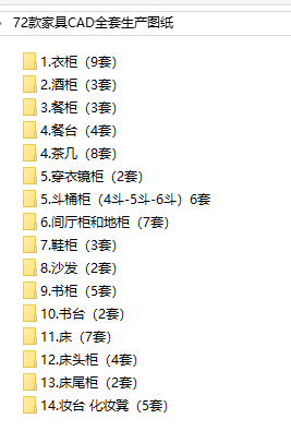 72款家具CAD全套生产图纸
