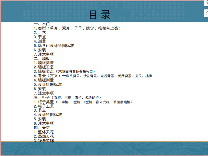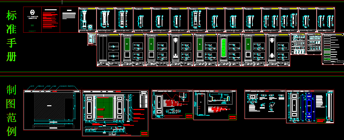 ① 全屋定制整木培训手册_木门护墙板制图标准CAD图库,容量大小:22.6 MB 格式:DWG+PDF