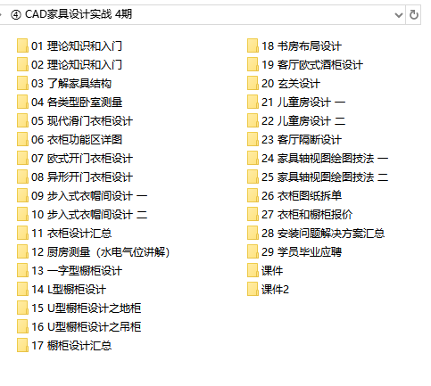 ④ CAD家具设计实战视频课程(4期),容量大小:19.2 GB,格式:主流播放器