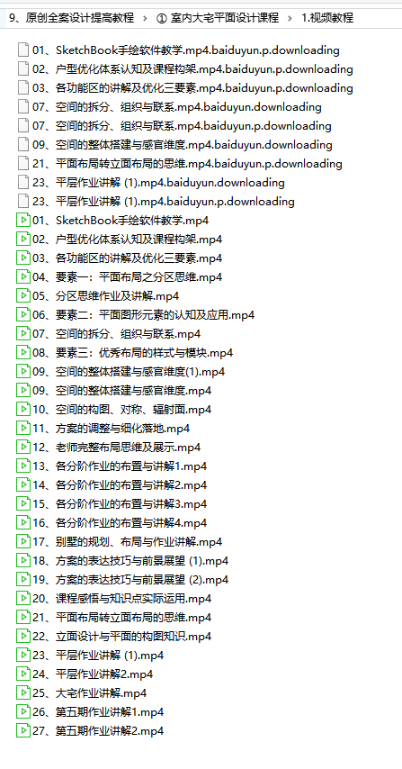 ① 室内大宅平面设计课程,容量大小:139 GB,格式:主流播放器