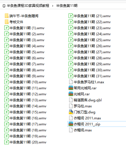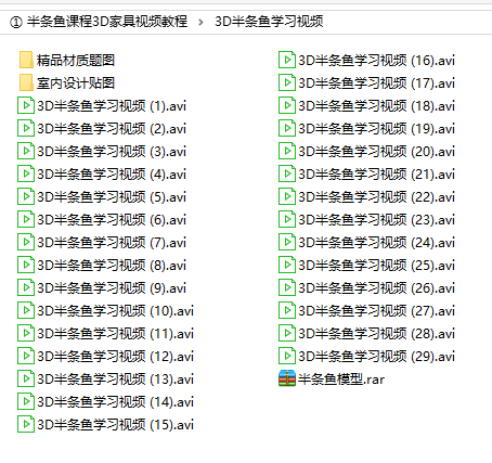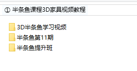 ① 半条鱼课程3D家具视频教程,容量大小:72.7 GB,格式:主流播放器