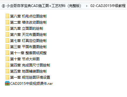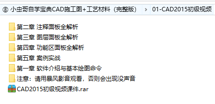 ⑧ 小虫哥自学宝典CAD施工图+工艺材料(完整版),容量大小:19.5 GB,格式:主流播放器