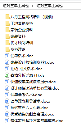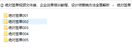 ② 绝对签单视频文件装,企业谈单培训教程,设计师营销方法全面解析,容量大小:20.1 GB,格式:主流播放器