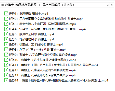 ① 曹博士368风水学院教程,容量大小:51.8 GB,格式:主流播放器