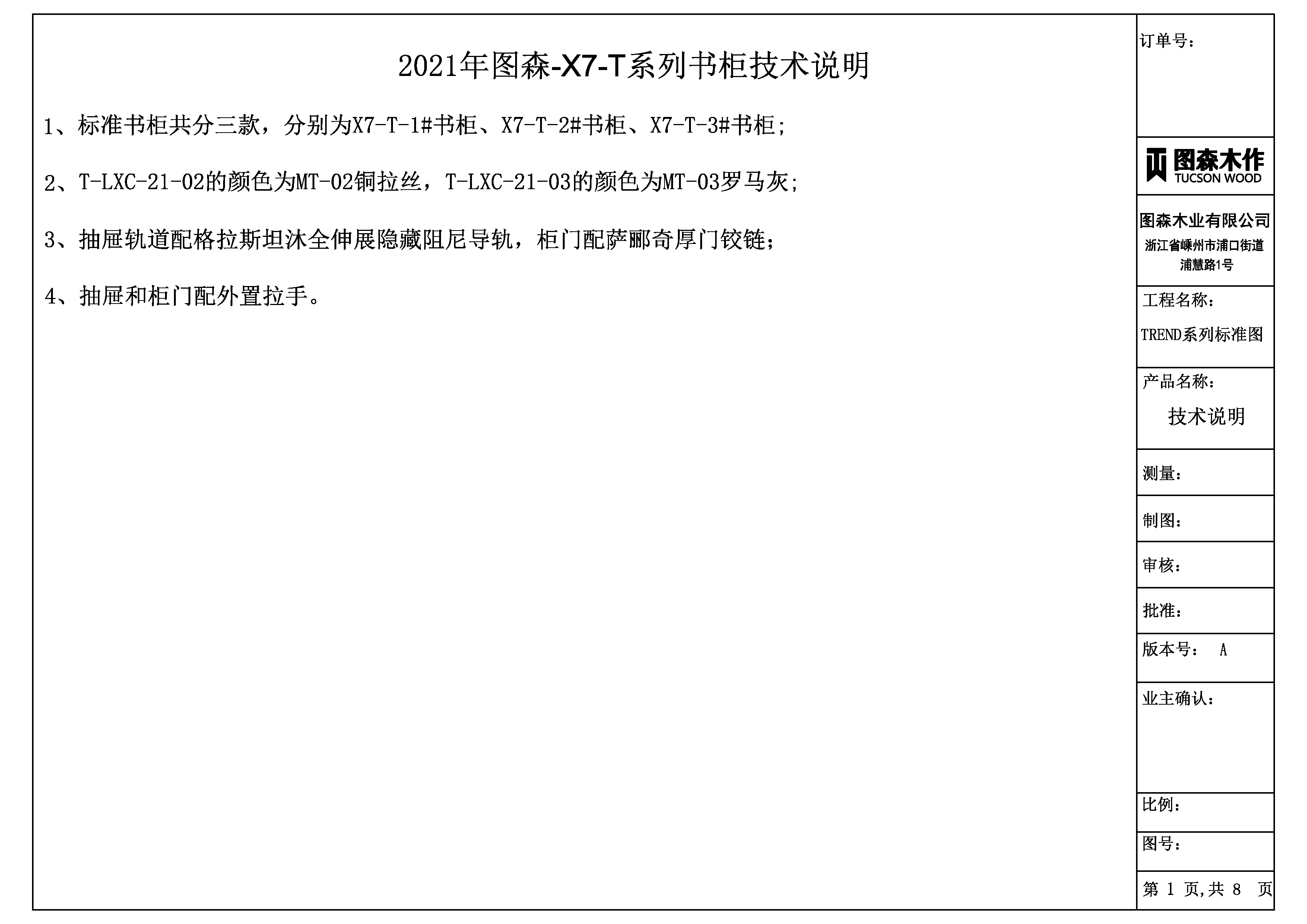 《2021年图森-X7-T系列书柜标准图》