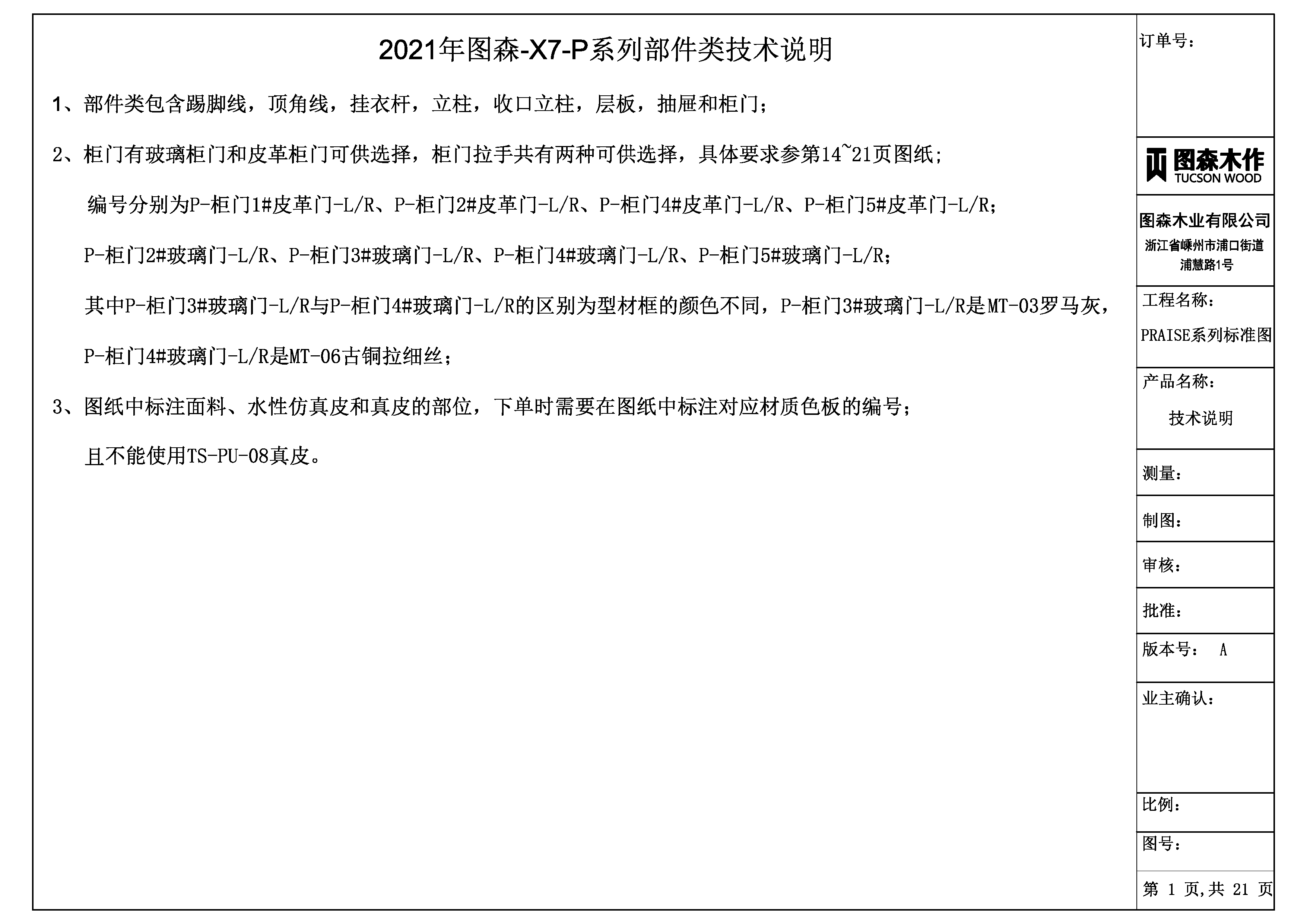 2021年图森-X5系列木饰面、门标准图截图展示