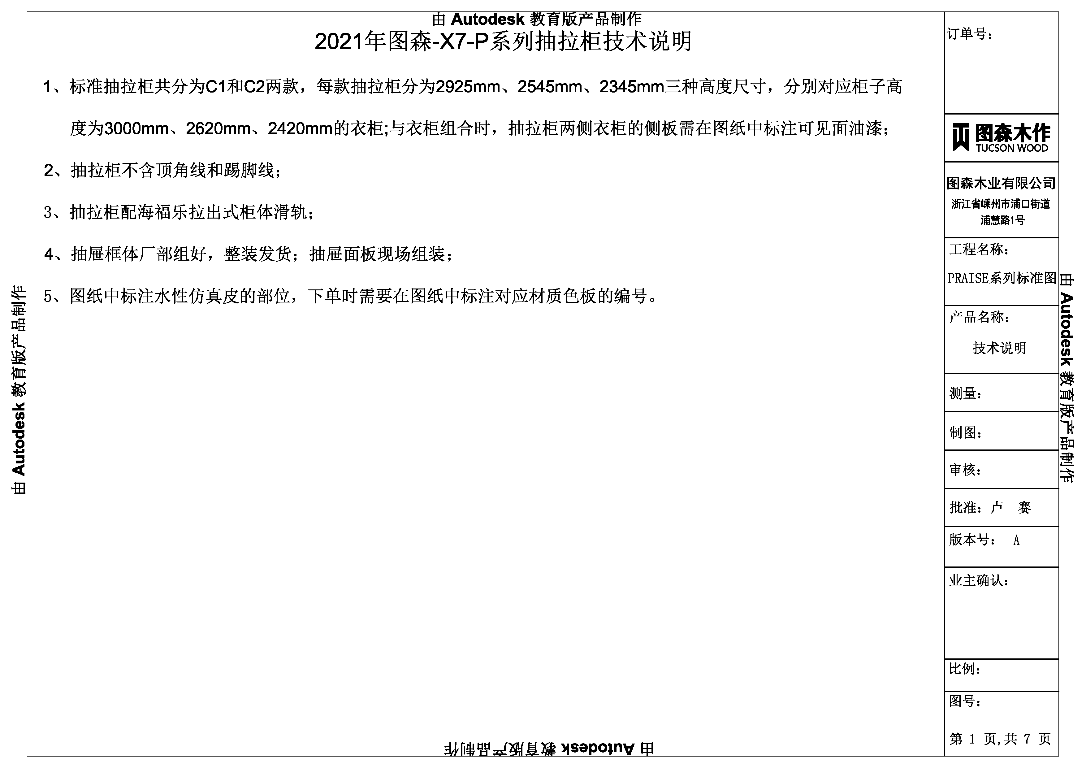 《2021年图森-X7-P系列抽拉柜标准图》