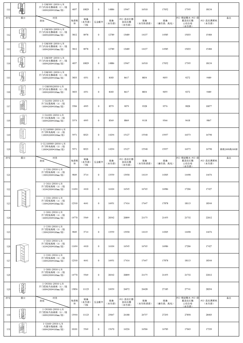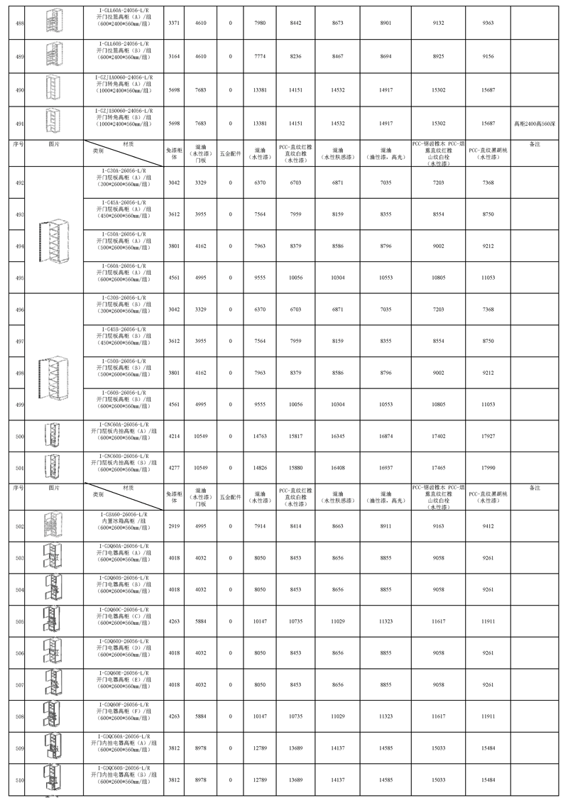 《2022年图森-PUCCINI系列(因达INDA)橱柜报价清单》