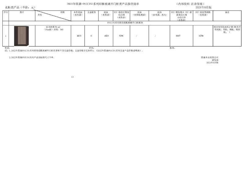 《2022年图森-PUCCINI系列铝框玻璃开门柜类产品报价清单》