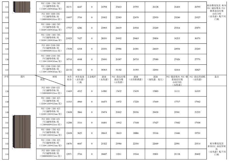 《2022年图森-PUICCINI系列吊柜产品报价清单》