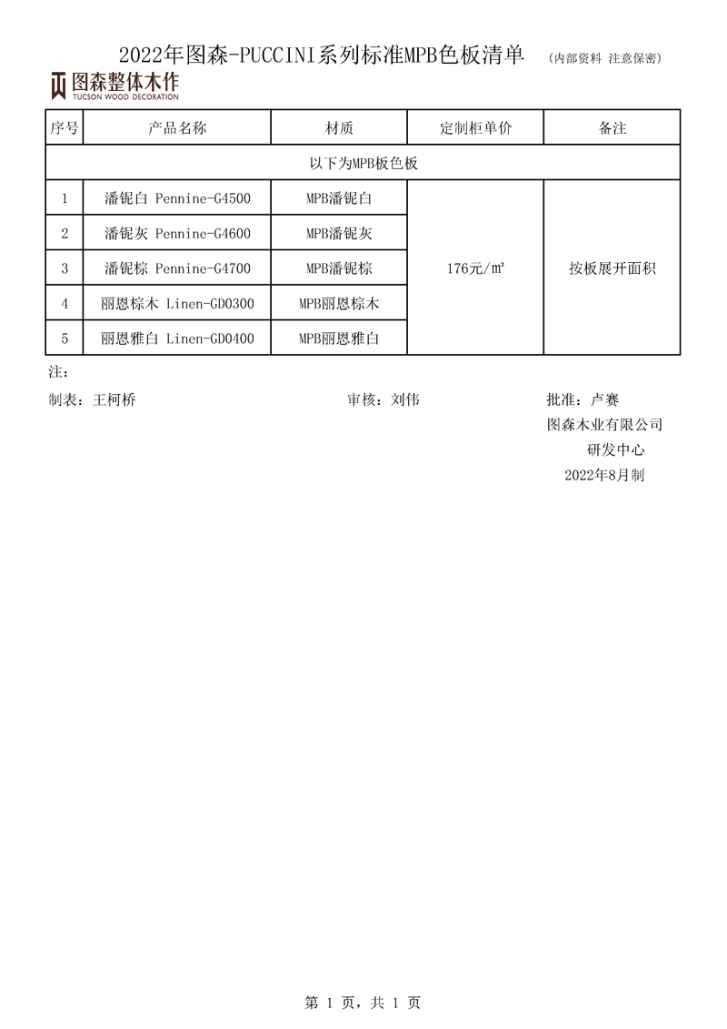 《2022年图森-PUCCINI系列标准MPB色板清单》