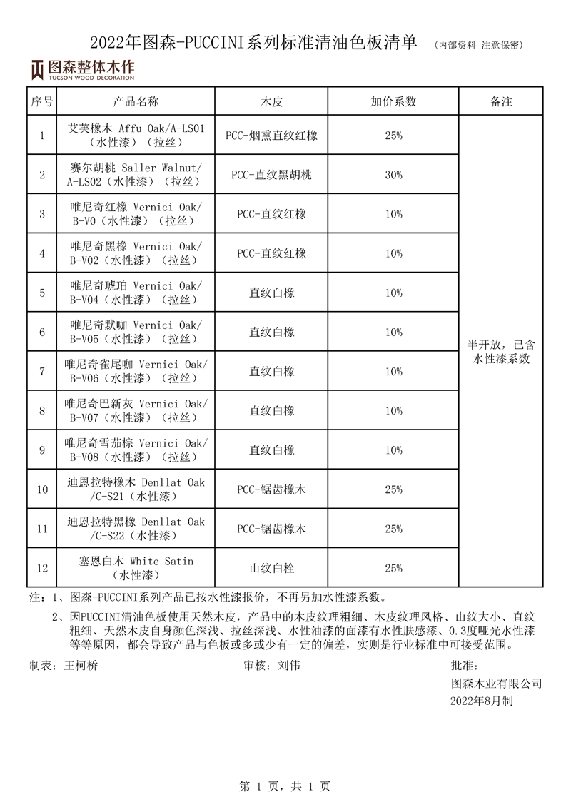 《2022年图森-PUCCINI系列标准清油色板清单》