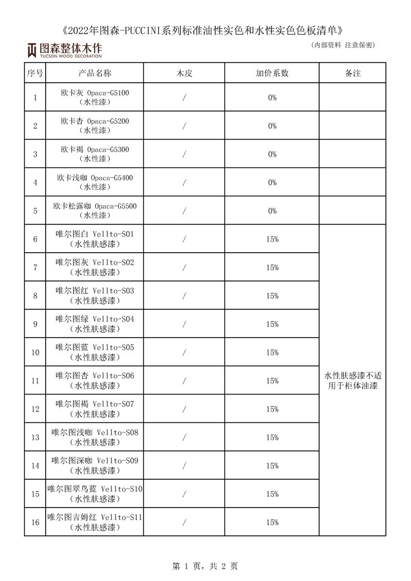 《2022年图森-PUCCINI系列标准油性实色和水性实色色板清单》