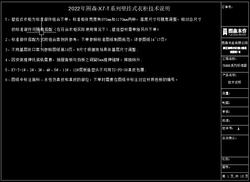 《2022年图森-X7-T系列壁挂式衣柜标准图》截图展示
