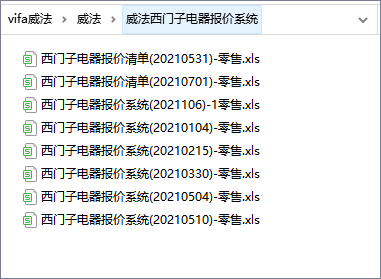 威法西门子电器报价系统截图展示