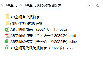 A8空间现代极简报价表截图展示
