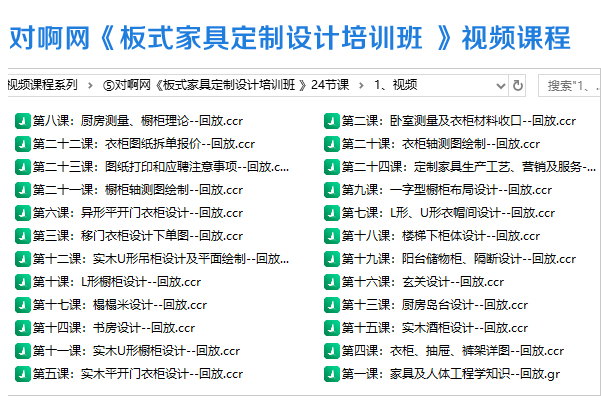 ⑤ 对啊网《板式家具定制设计培训班 》24节课,3.2 GB ,格式:主流播放器