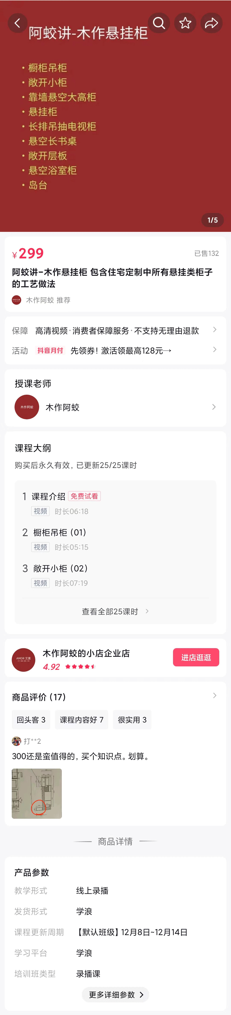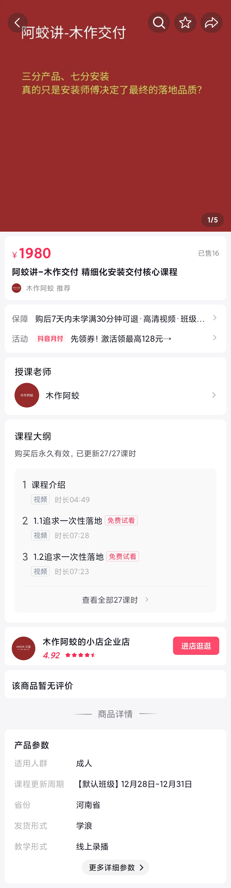这套(阿蛟讲木作交付-精细化安装交付核心课程)其实是老李同学花了1980买来自己学习的,课程是在线观看的,现在破解了。给您原件教程,跟官方一模一样,下载到电脑上就可以观看学习了。很多经销商设计师朋友都买了.....官方有的都有。