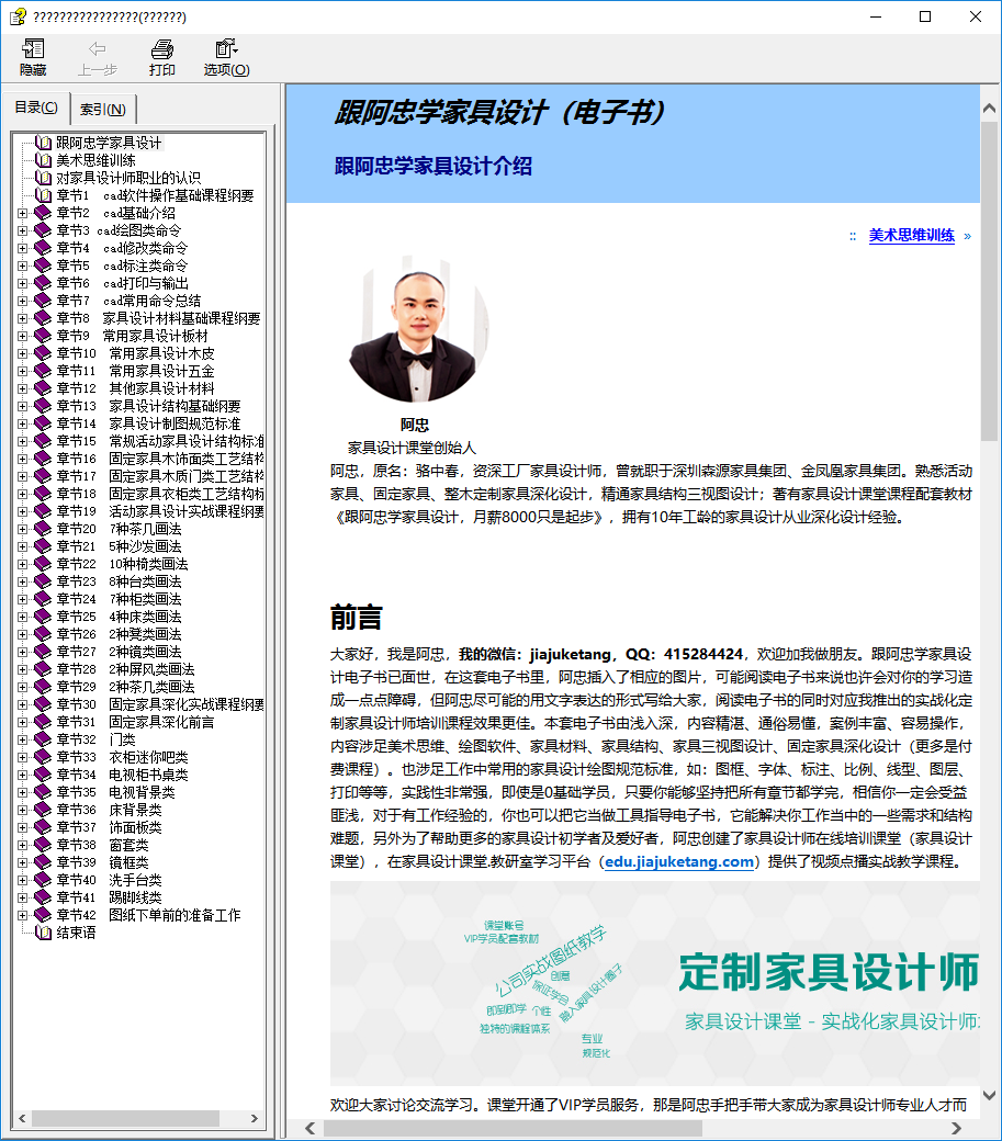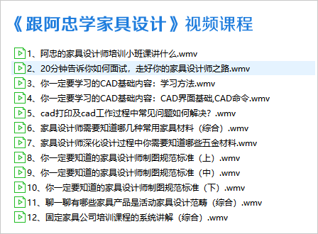 ⑨「家具设计课堂」《跟阿忠学家具设计》视频课程及电子书,12节课,3.5 GB,格式:主流播放器