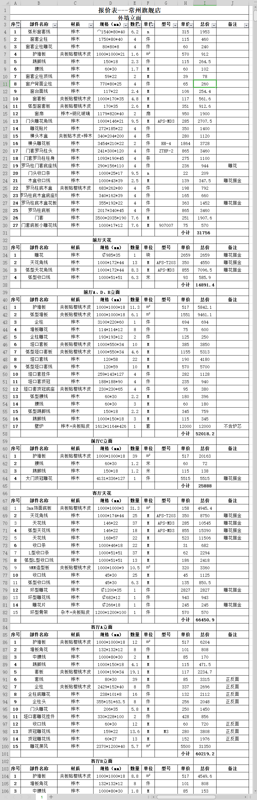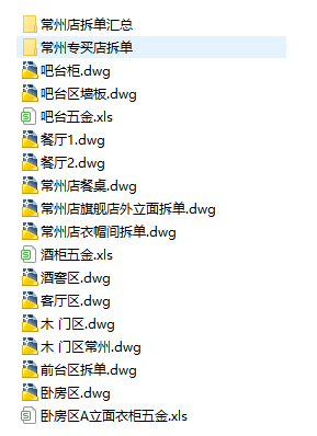 其他比如:餐厅1、餐厅2、酒窖、客厅区、木门区、前台区、书房区、外立面、卧室区、衣帽间拆单不再一一截图展示。