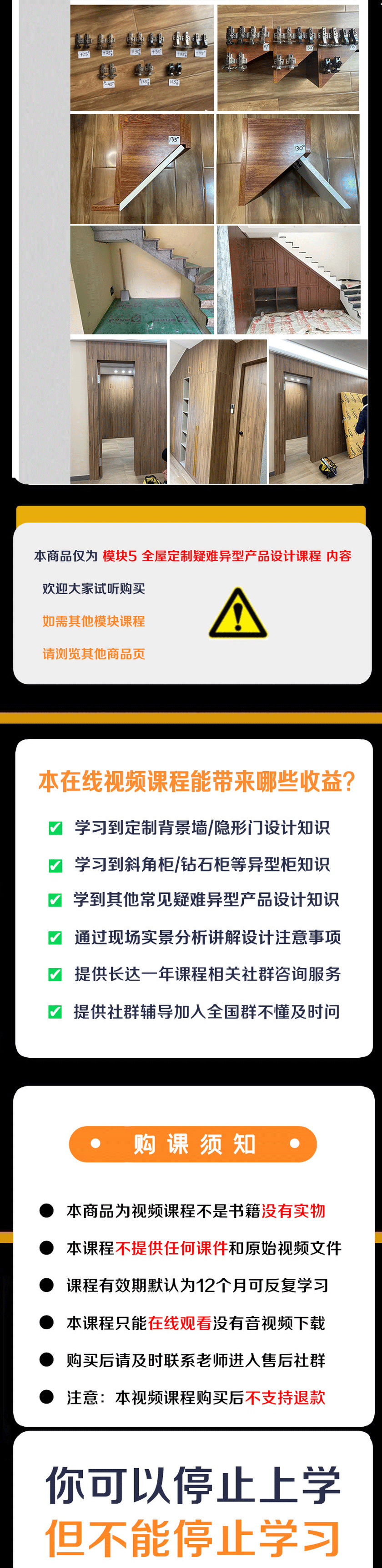 一套包含定制家具楼梯柜/隐形门/斜角柜/反弹柜/各种异型铰链等疑难异型设计课程。