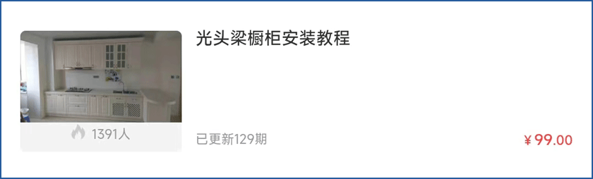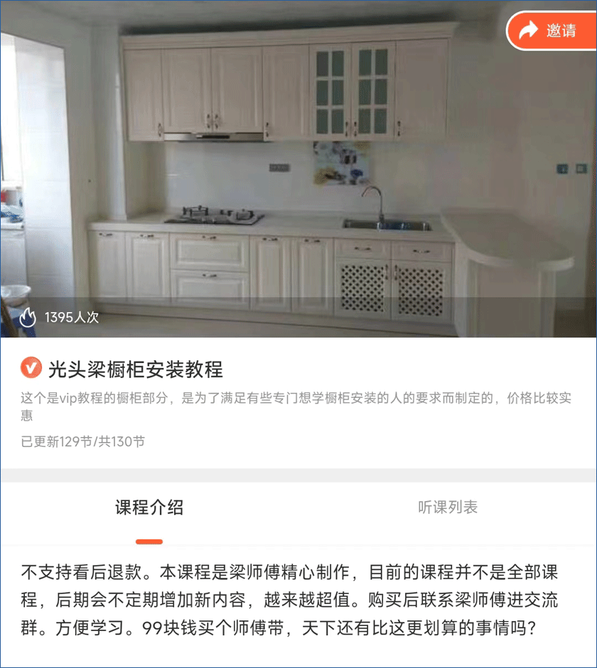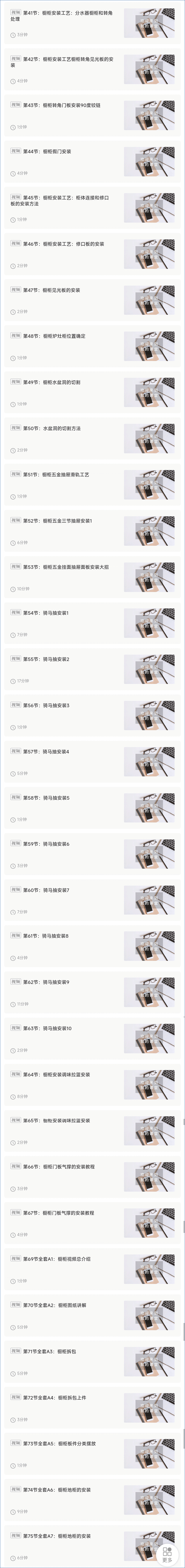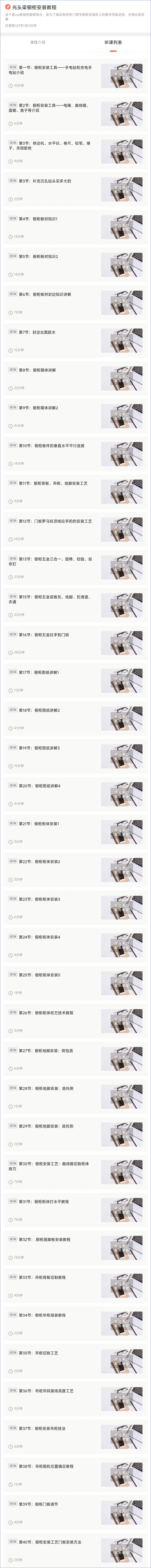 这个是vip教程的橱柜部分,是为了满足有些专门想学橱柜安装的人的要求而制定的,价格比较实惠,已更新129节/共130节。