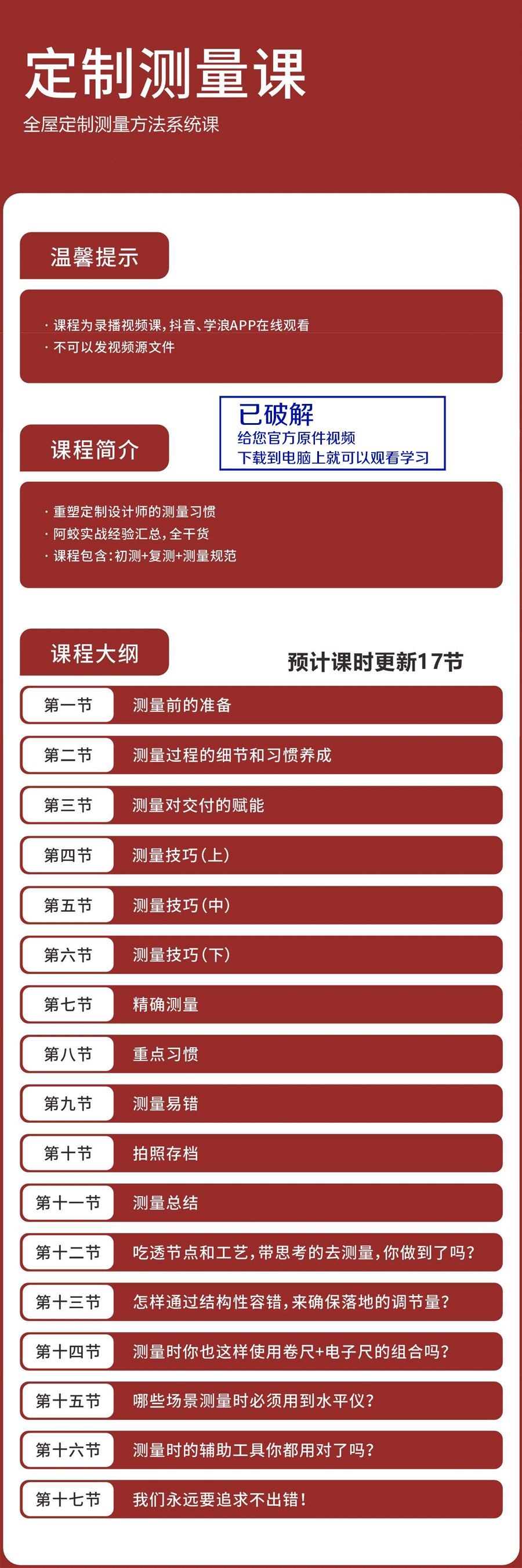 定制测量课-全屋定制测量方法系统课 课程截图
