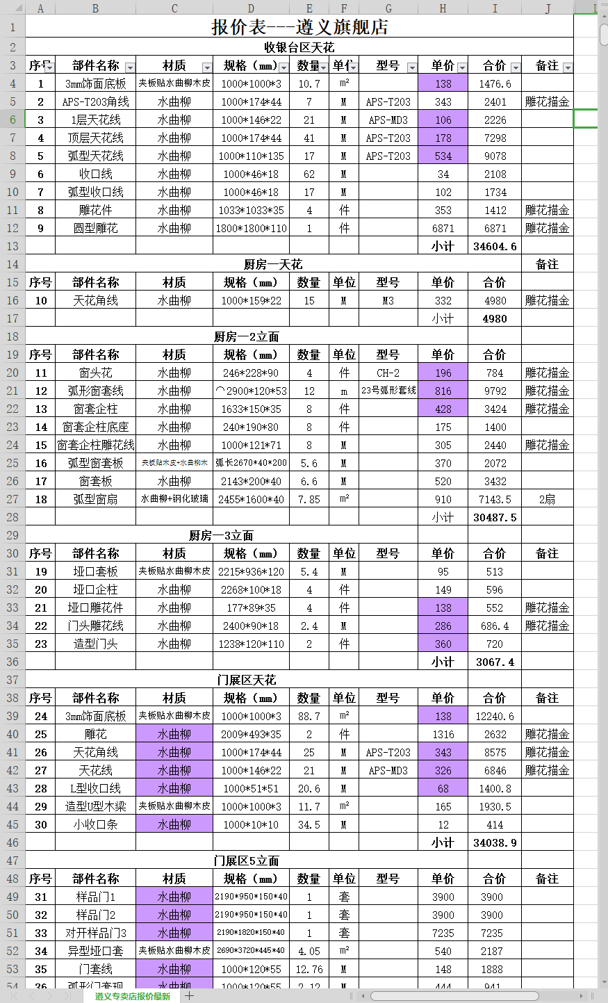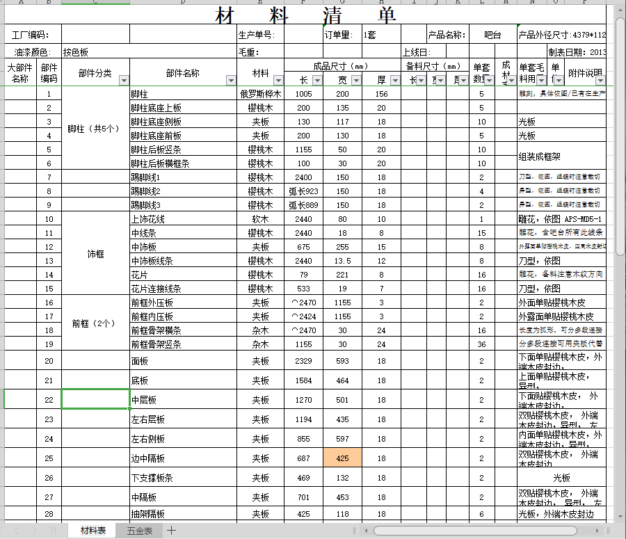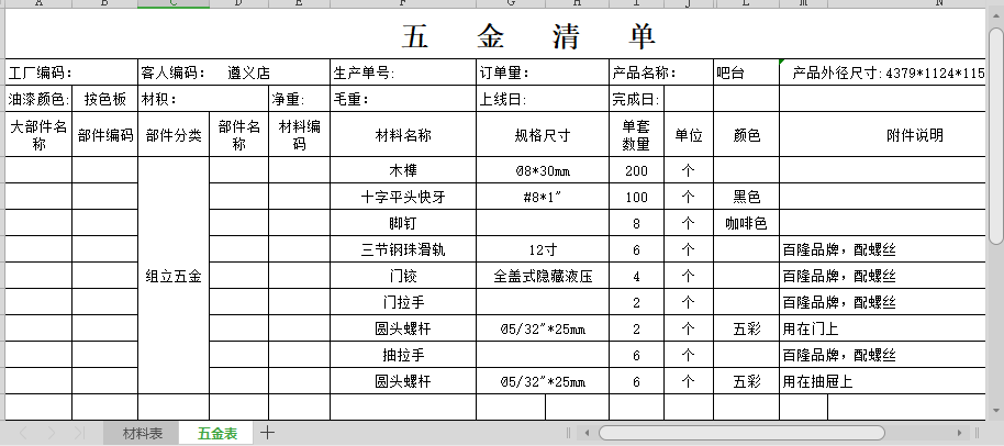遵义店吧台材料表