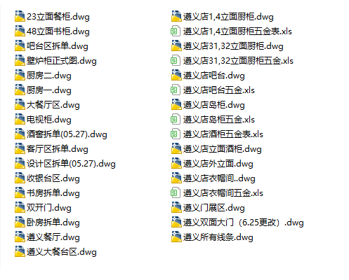 其他比如:餐厅、卧室区、衣帽间等等拆单不再一一截图展示。