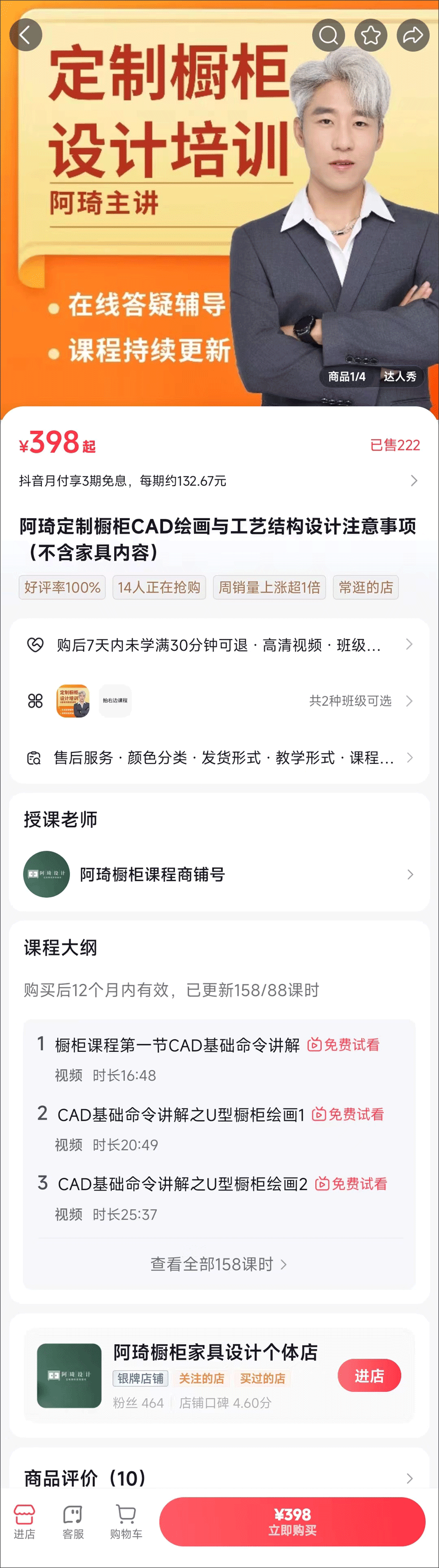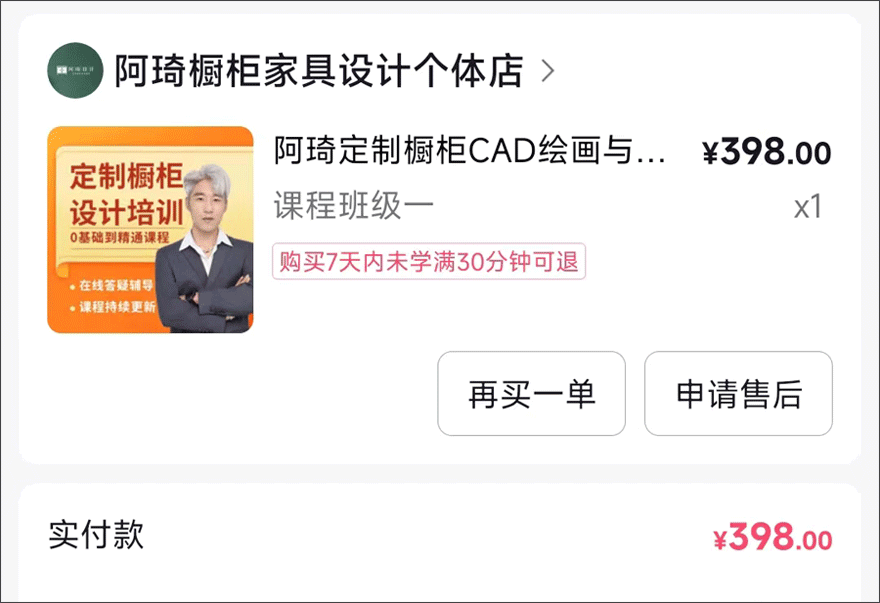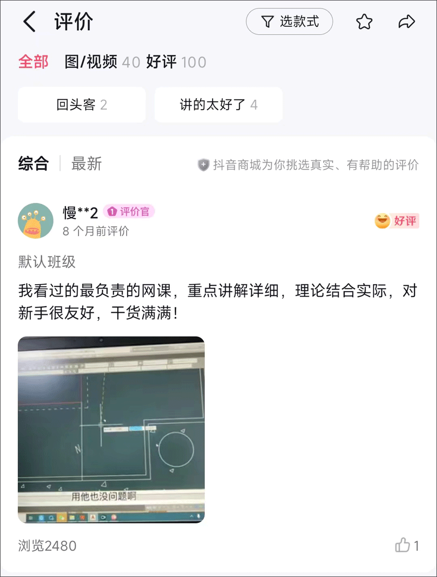 阿琦定制橱柜《从零基础到精通CAD设计课程(不含家具内容)》截图评价