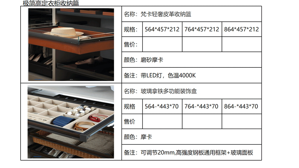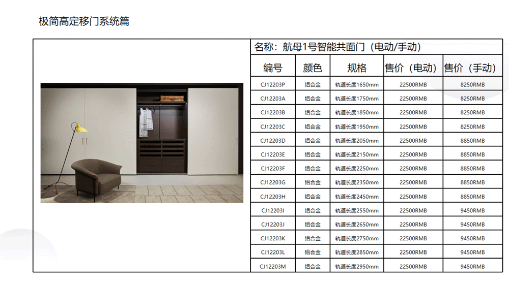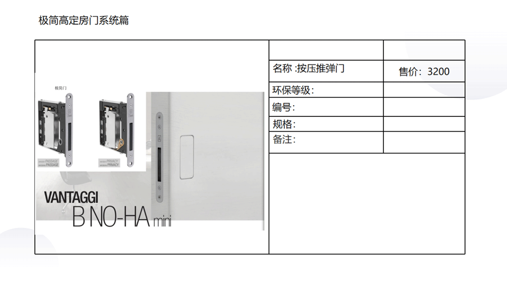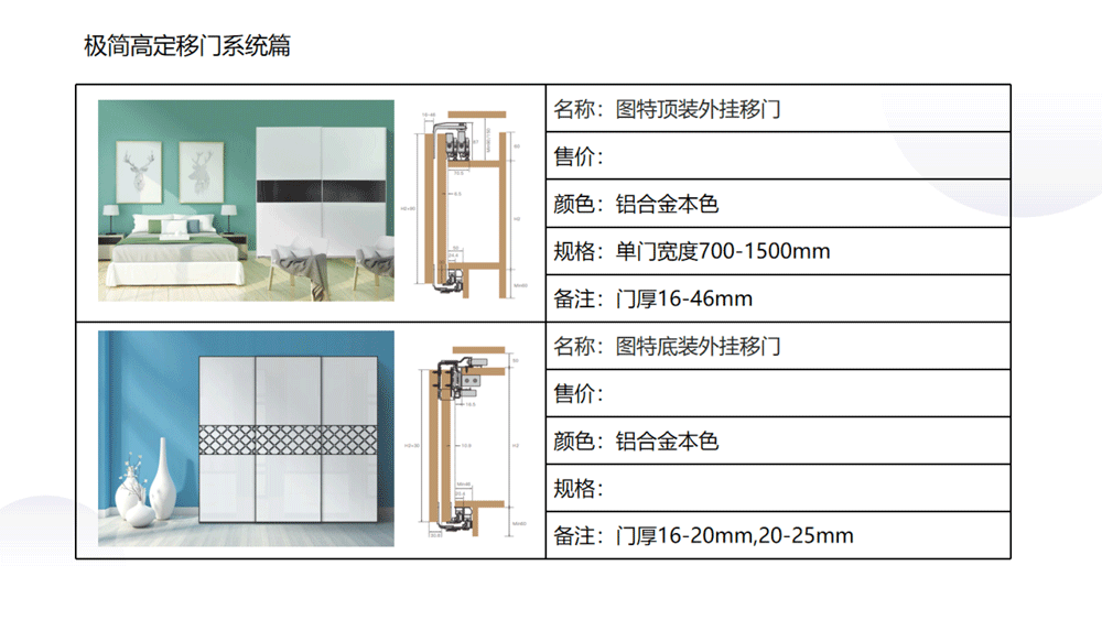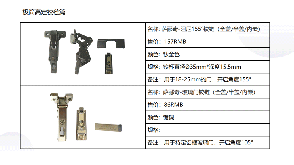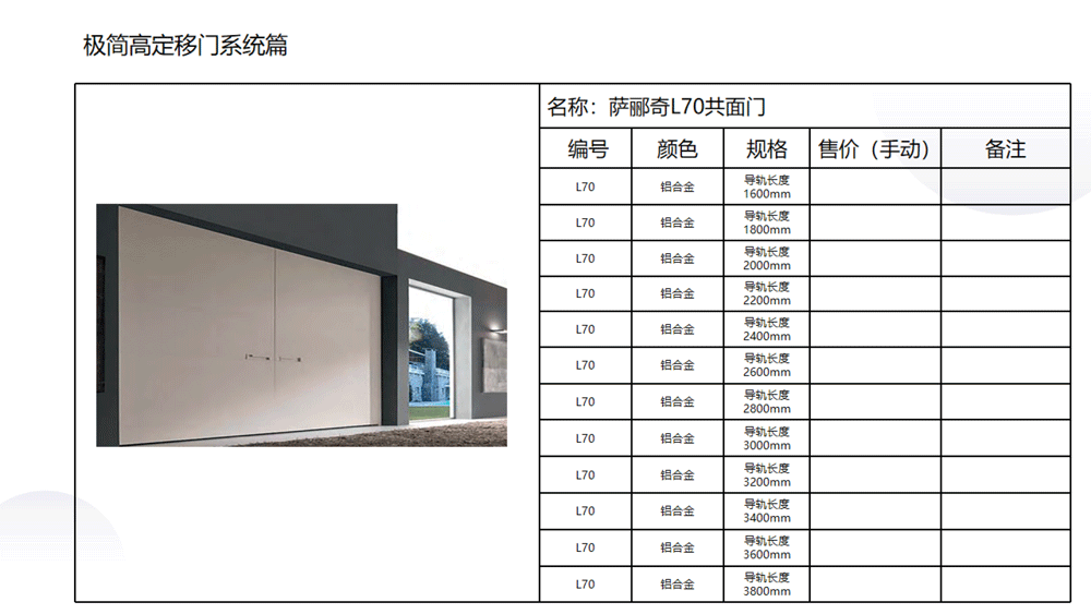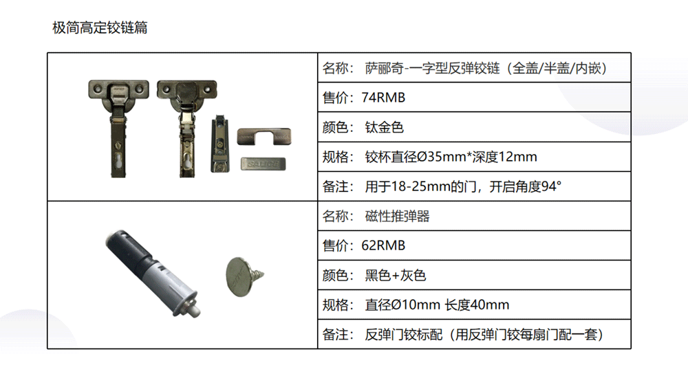 以下是C极简高定五金系列内的《03 极简高定价格手册系统》部分内容