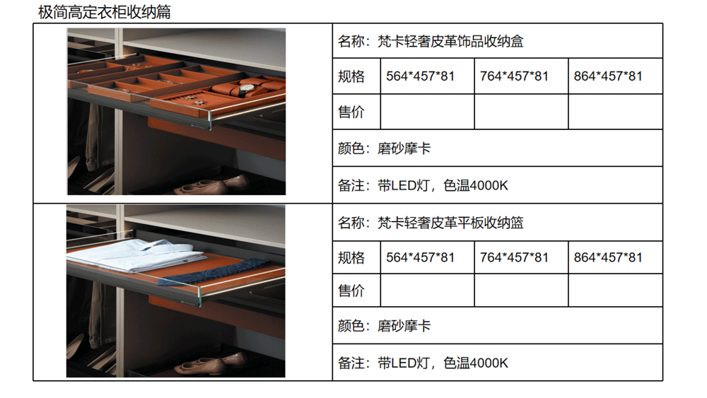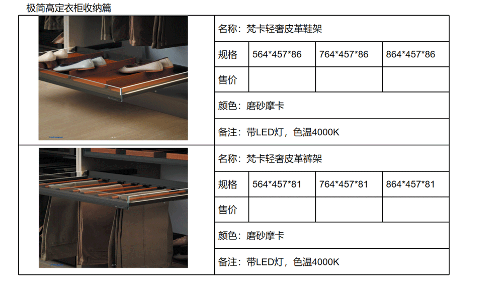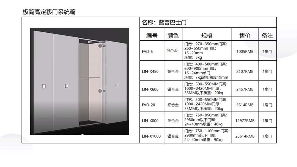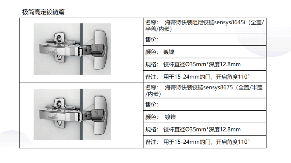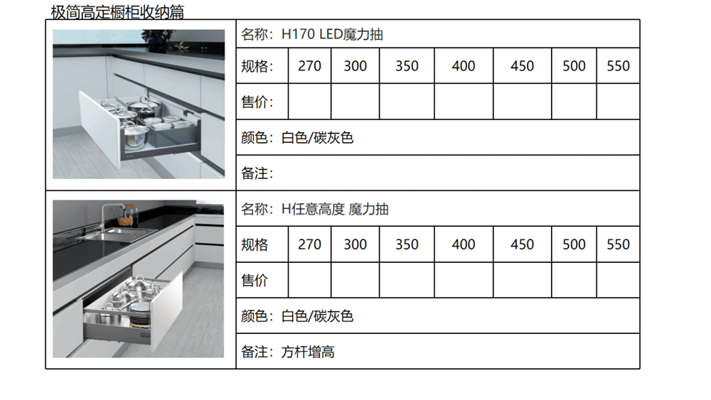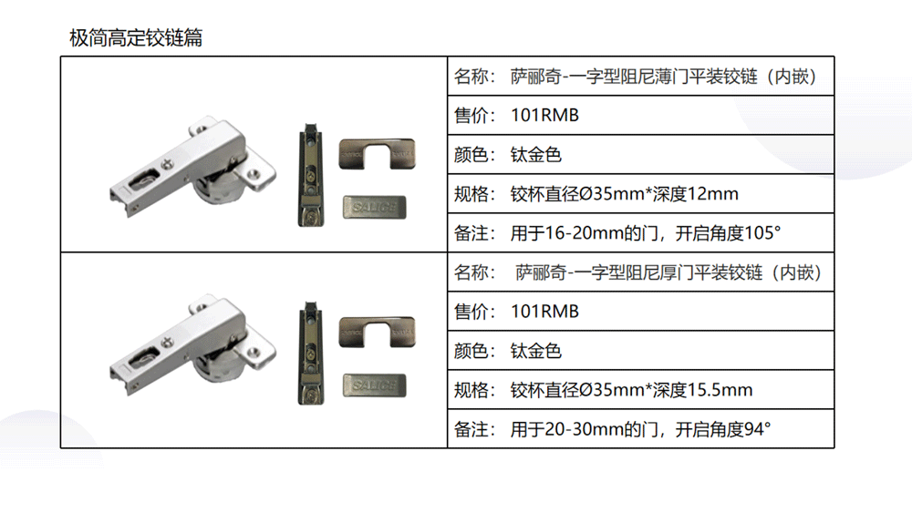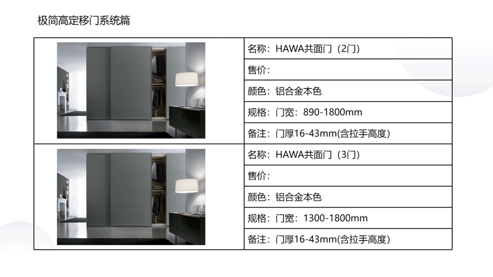 以下是C极简高定五金系列内的《03 极简高定价格手册系统》部分内容