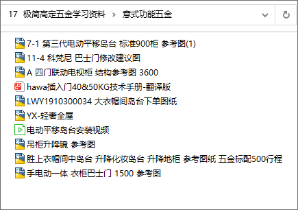 17 极简高定五金学习资料 内容截图 文件格式:pdf,dwg等