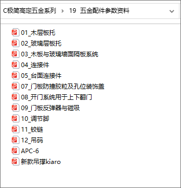 以下是C极简高定五金系列内的《19 五金配件参数资料》部分内容