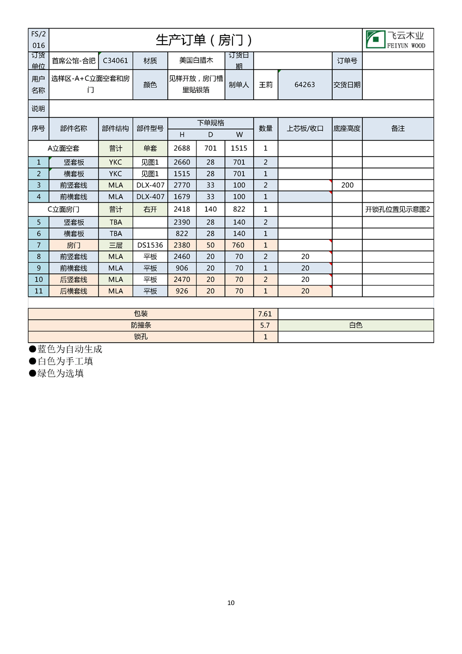 . 下单规范及注意事项-房门