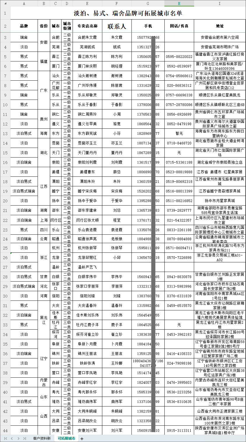 1、高定各品牌经销商通讯录
