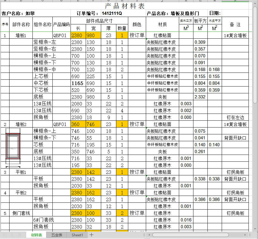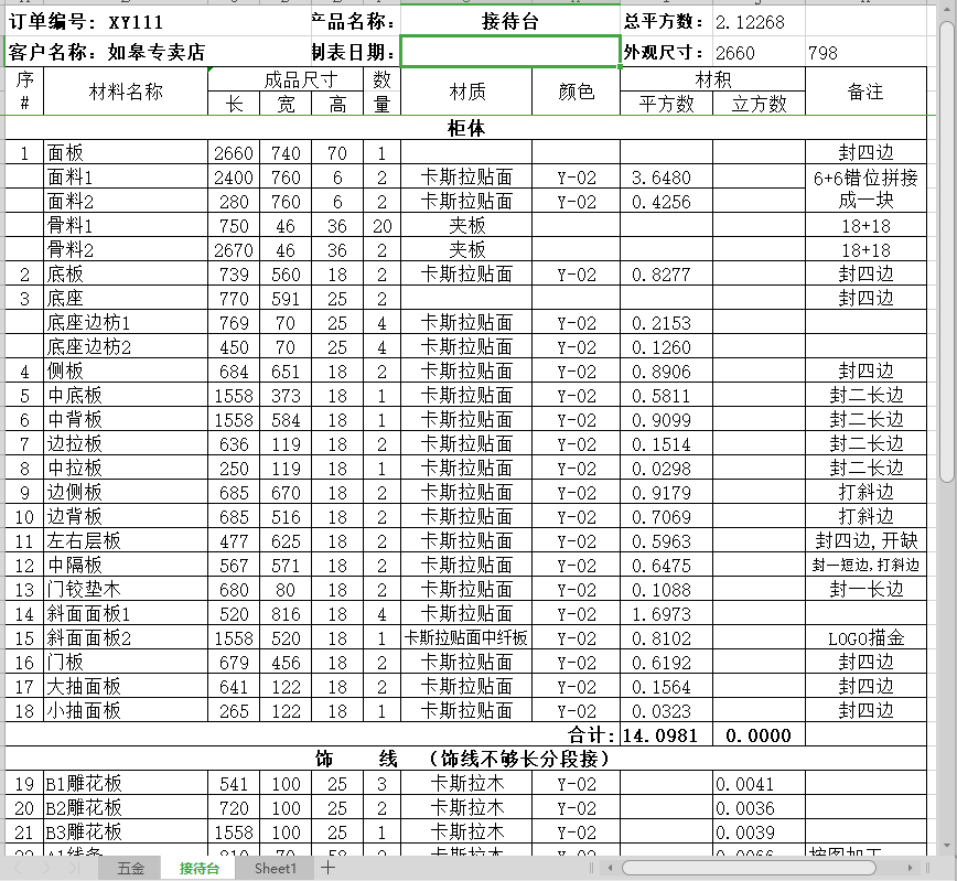 XY111料单