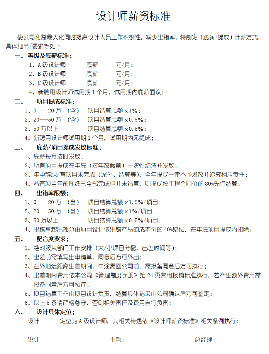 家具人事表格管理,薪资标准文件等