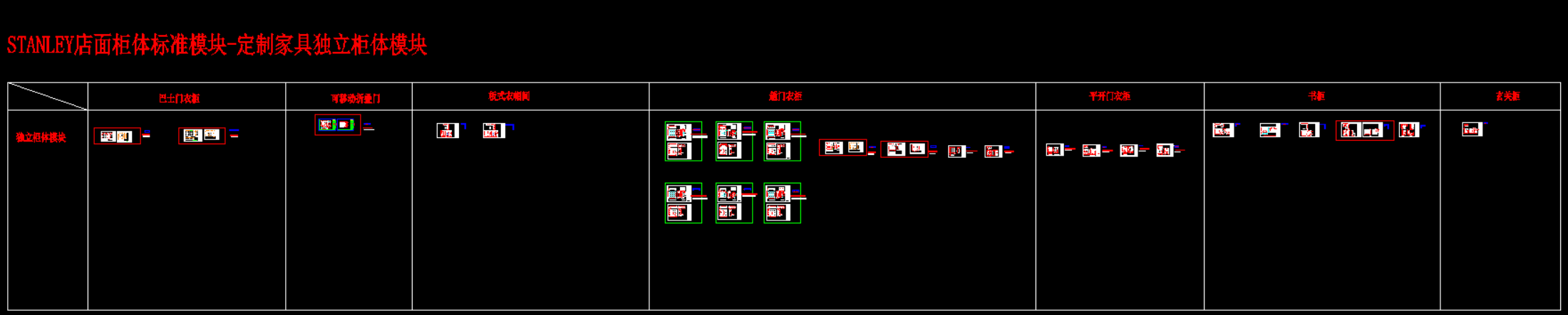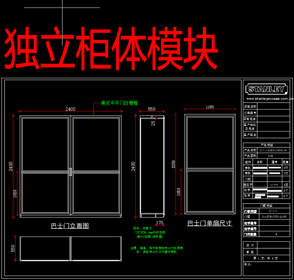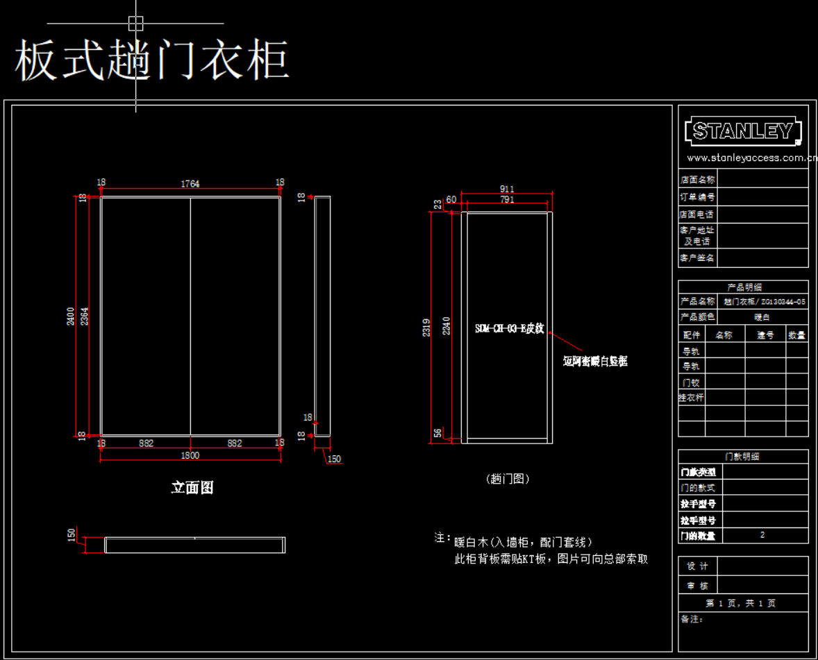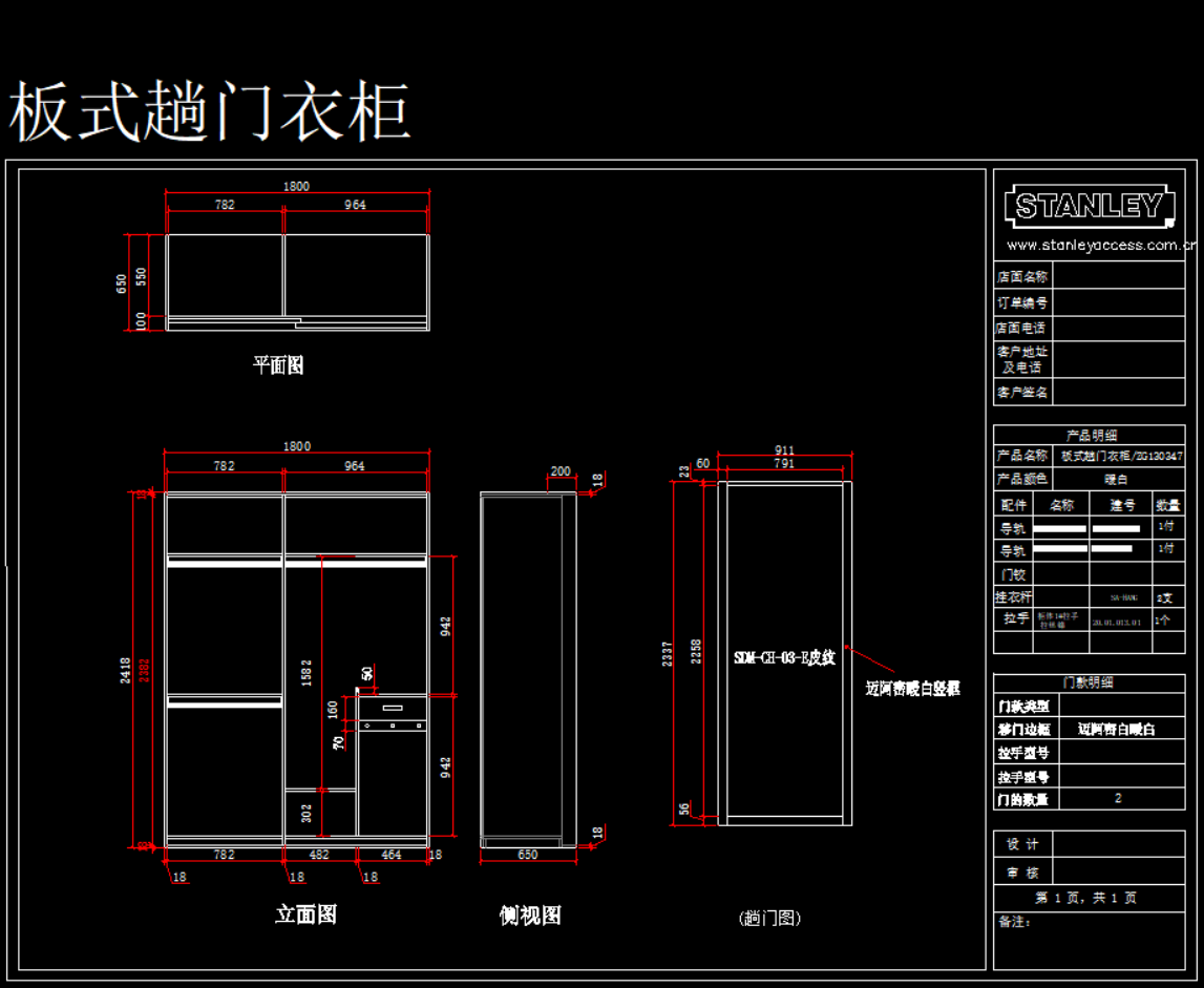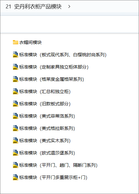 史丹利衣柜产品模块,105 MB ,AutoCAD2007以上版本可打开,百度云网盘发货。
