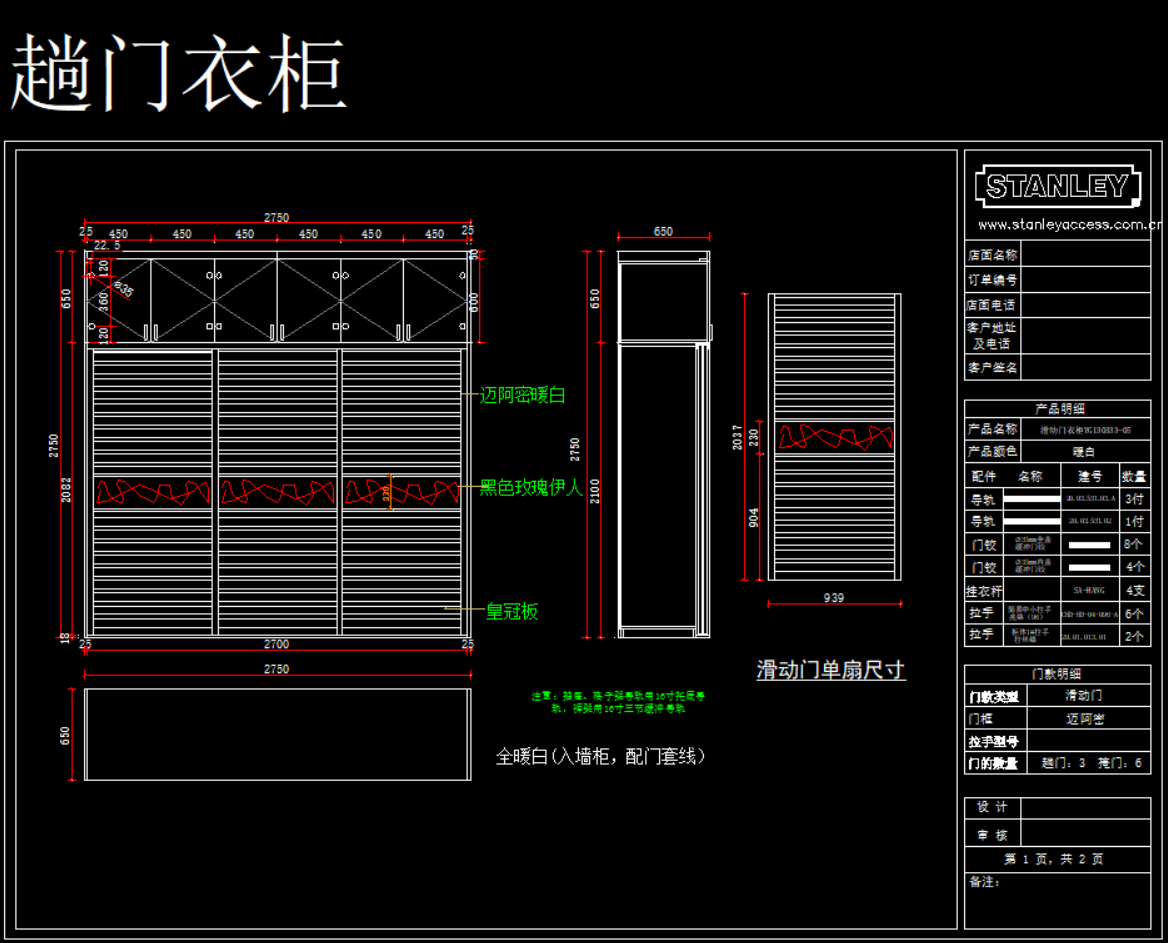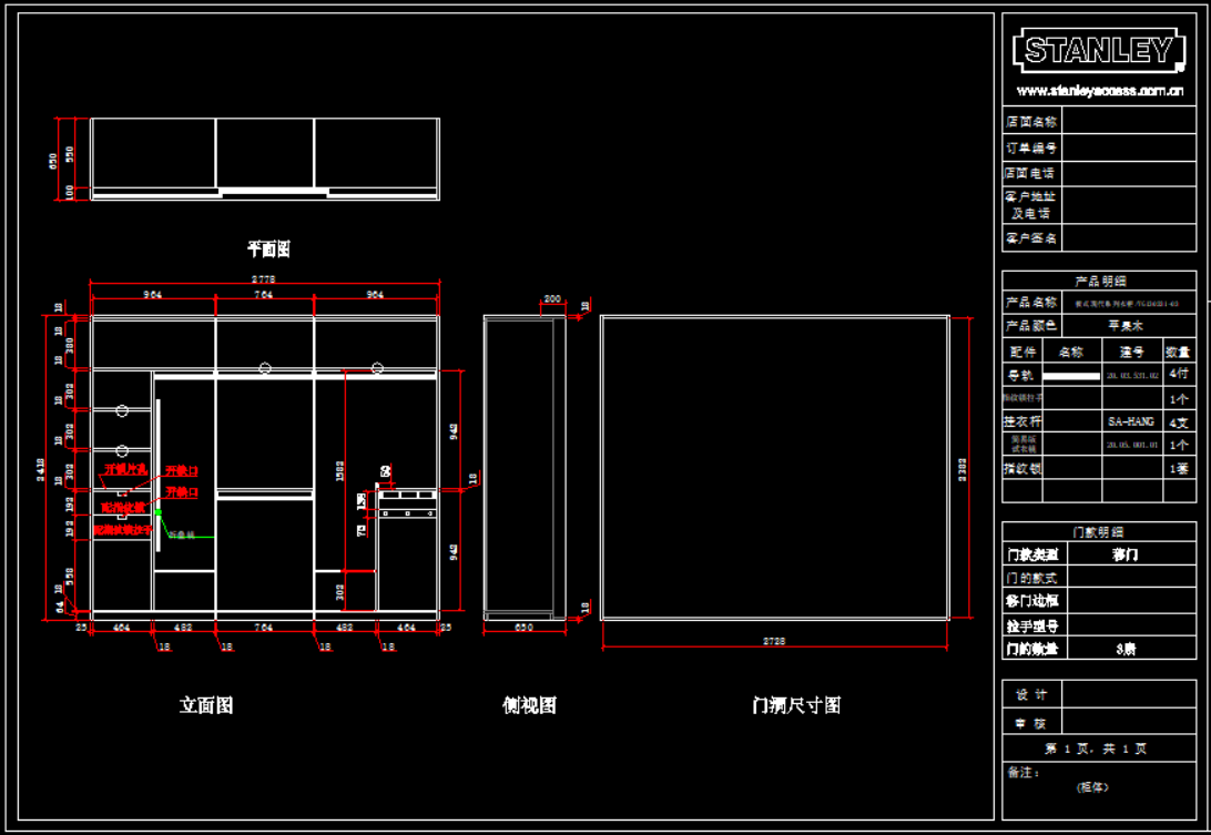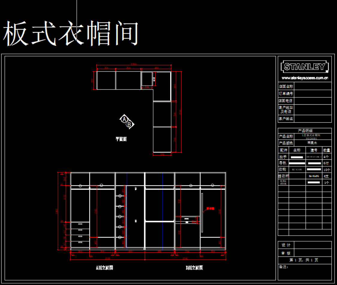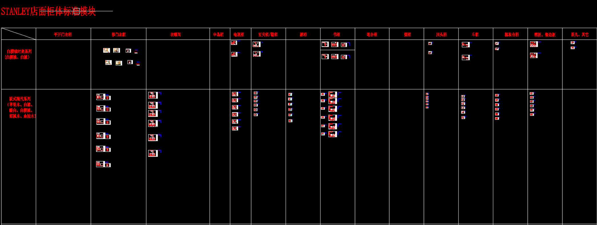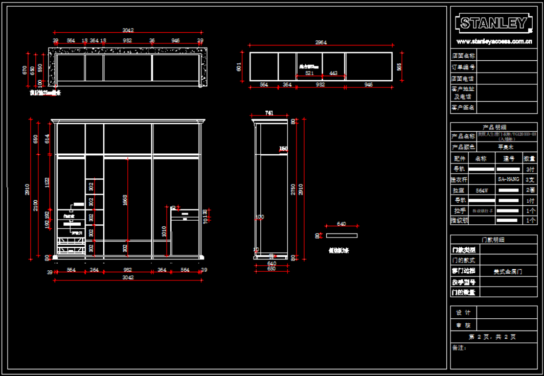 史丹利衣柜产品模块,105 MB ,AutoCAD2007以上版本可打开,百度云网盘发货。