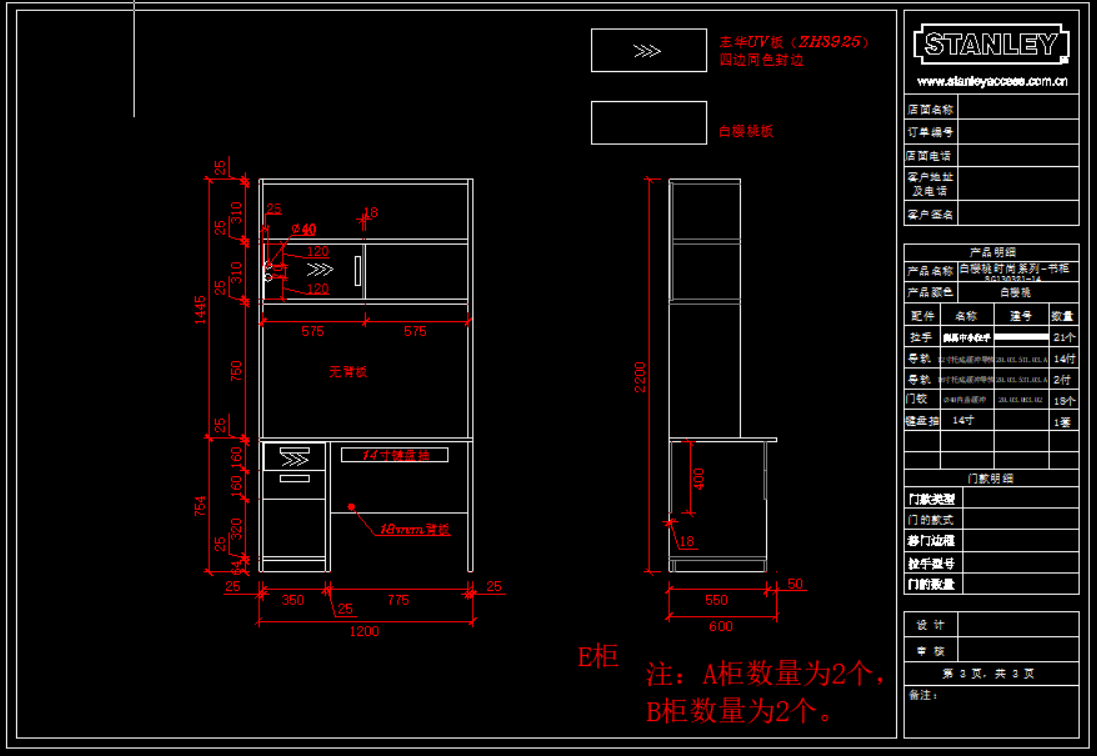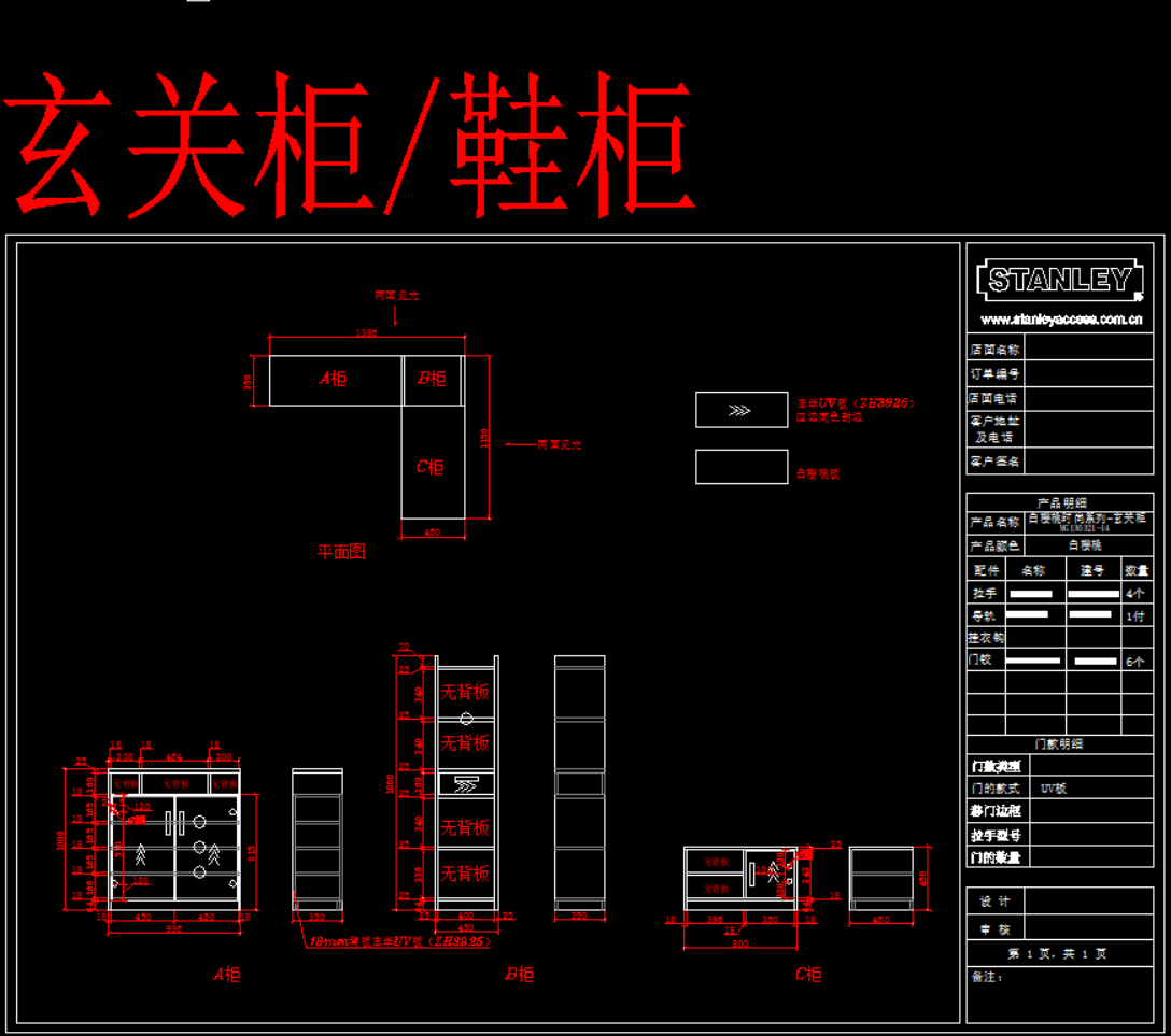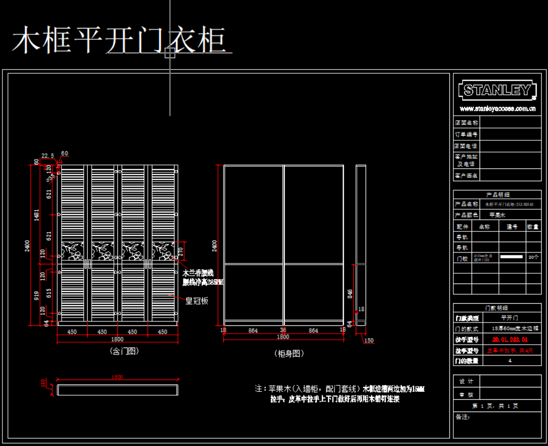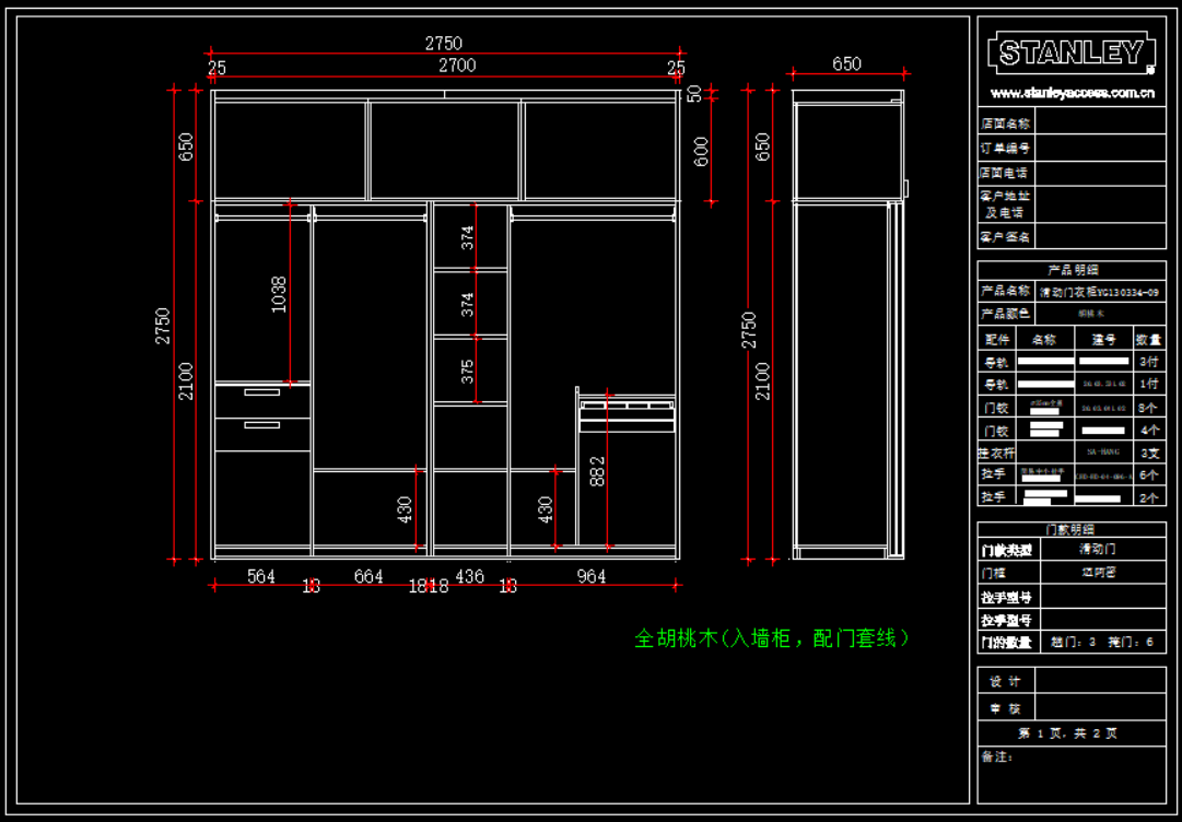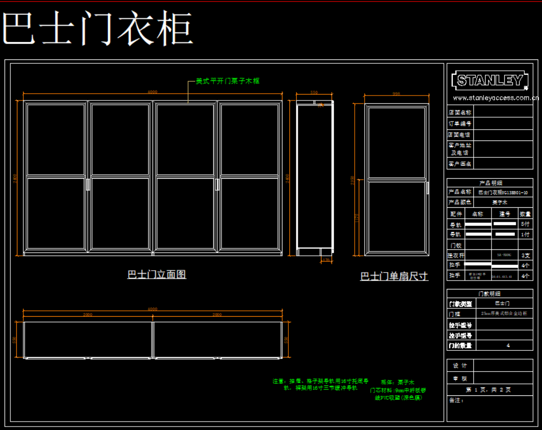 史丹利衣柜产品模块,105 MB ,AutoCAD2007以上版本可打开,百度云网盘发货。