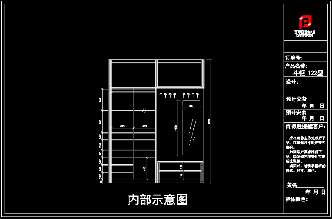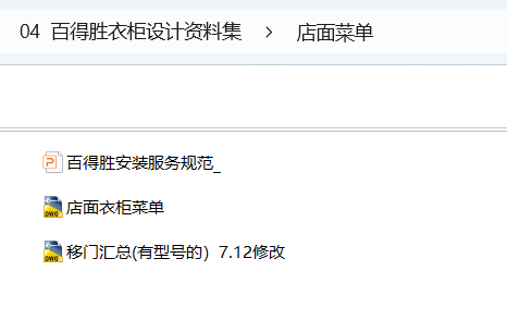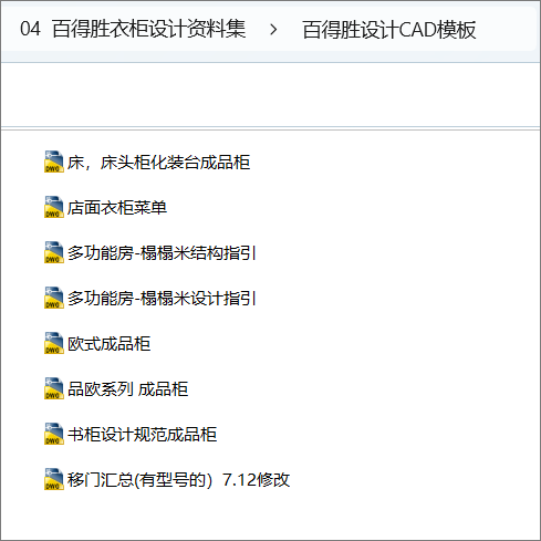 百得胜衣柜设计资料集,50.3 MB ,AutoCAD2007+图片+PDF文件等,百度云网盘发货。
