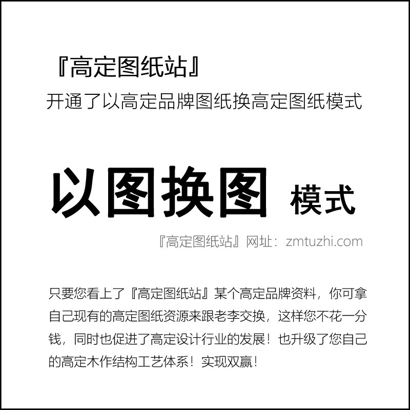 你可拿自己现有的高定图纸资源来跟老李交换,这样您不花一分钱,双方皆有利,实现双赢!同时也促进了高定设计行业的发展!也升级了您自己的高定木作结构工艺体系!实现双赢!