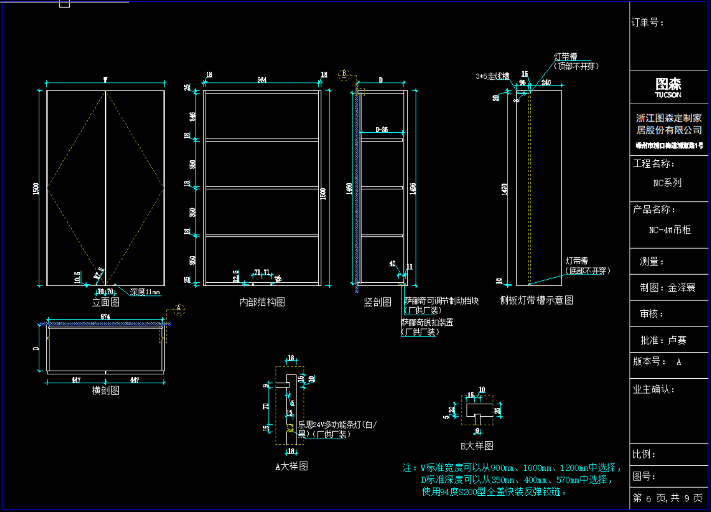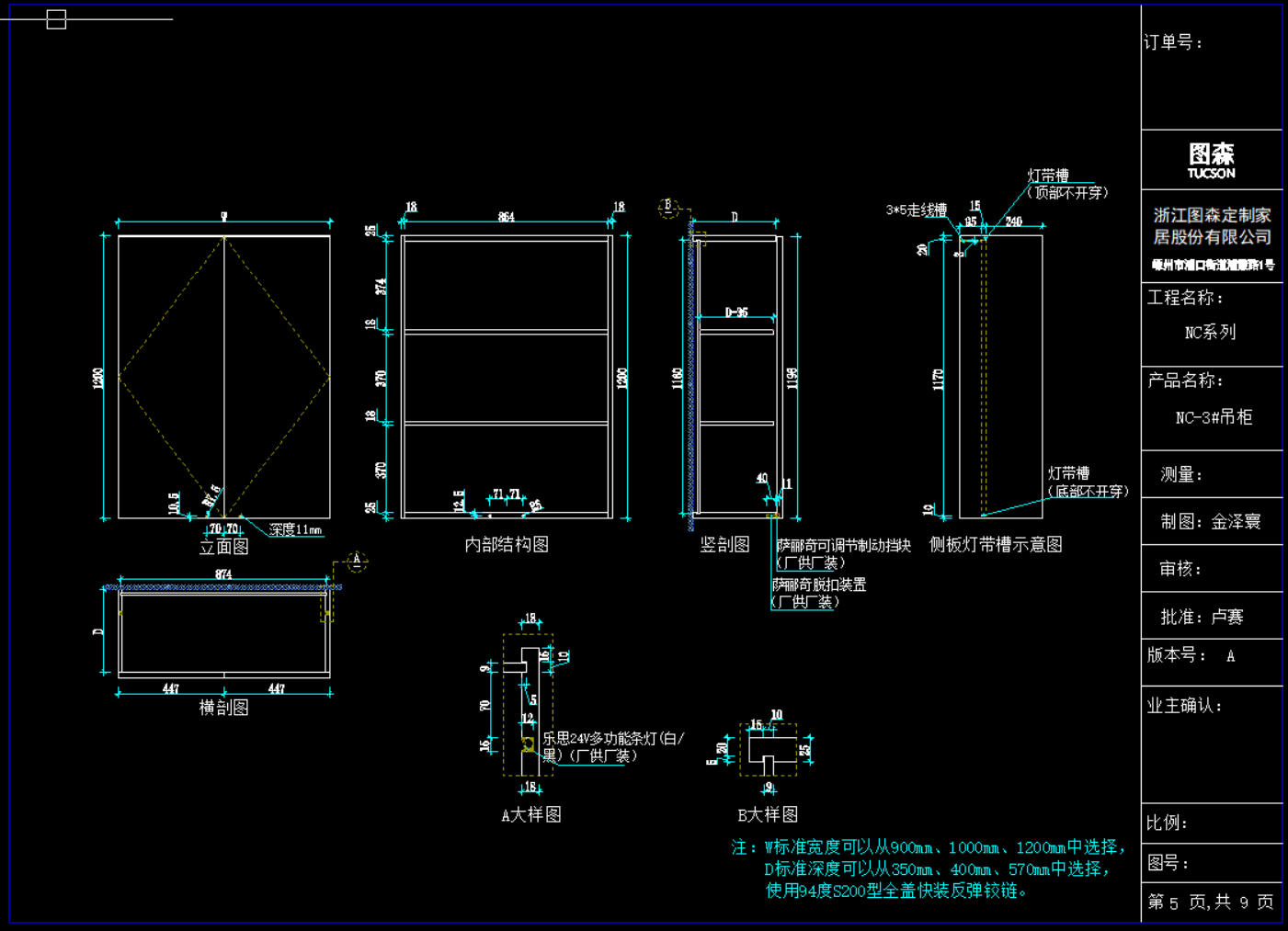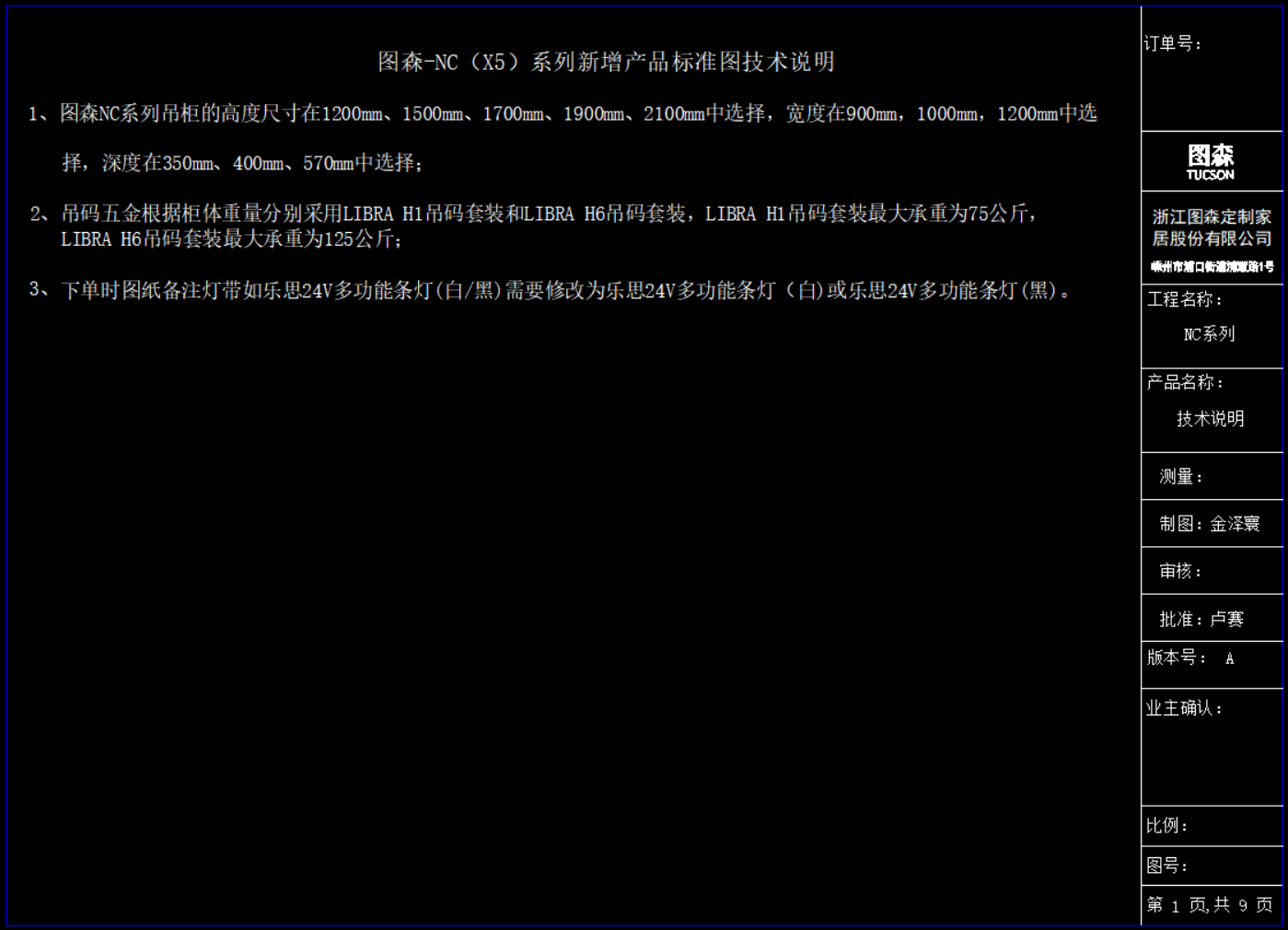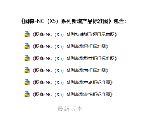 只截图显示了:《图森-NC(X5)系列新增吊柜标准图》部分资料