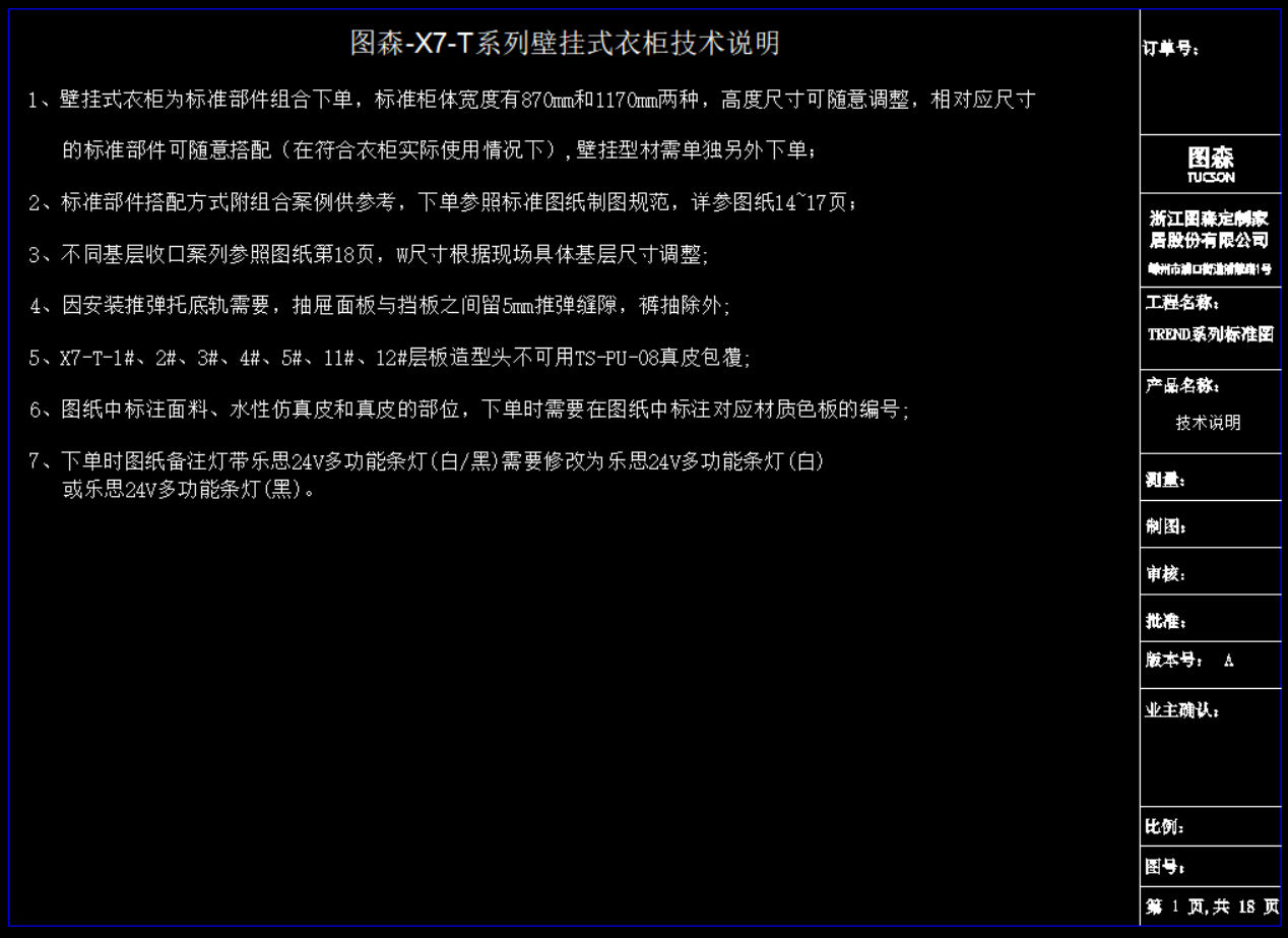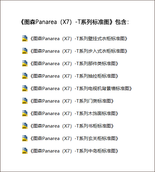 截图显示《图森Panarea(X7)-T系列壁挂式衣柜标准图》部分资料