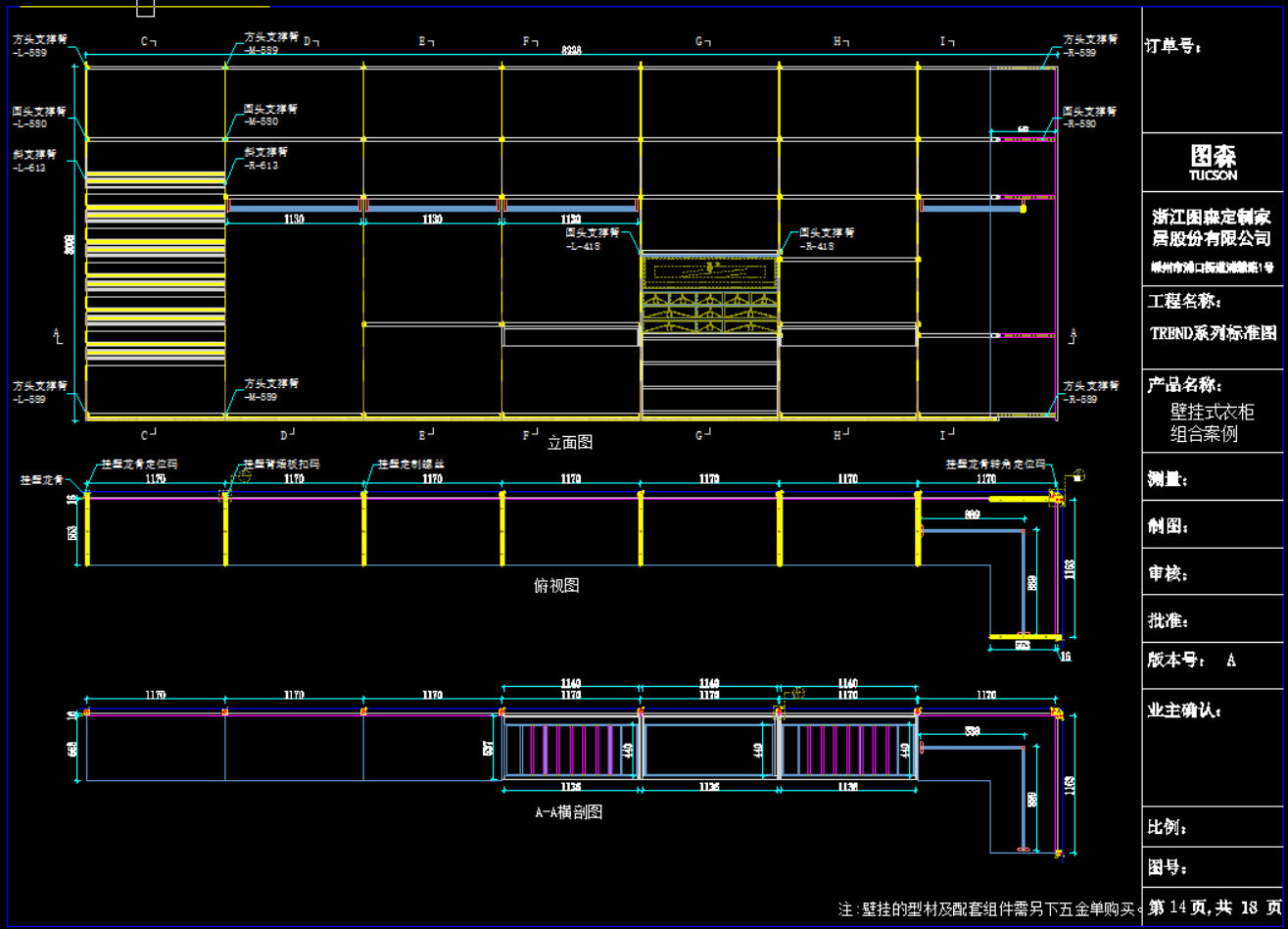 只截图显示了:《图森Panarea(X7)-T系列标准图》里面的《图森Panarea(X7)-T系列壁挂式衣柜标准图》部分资料