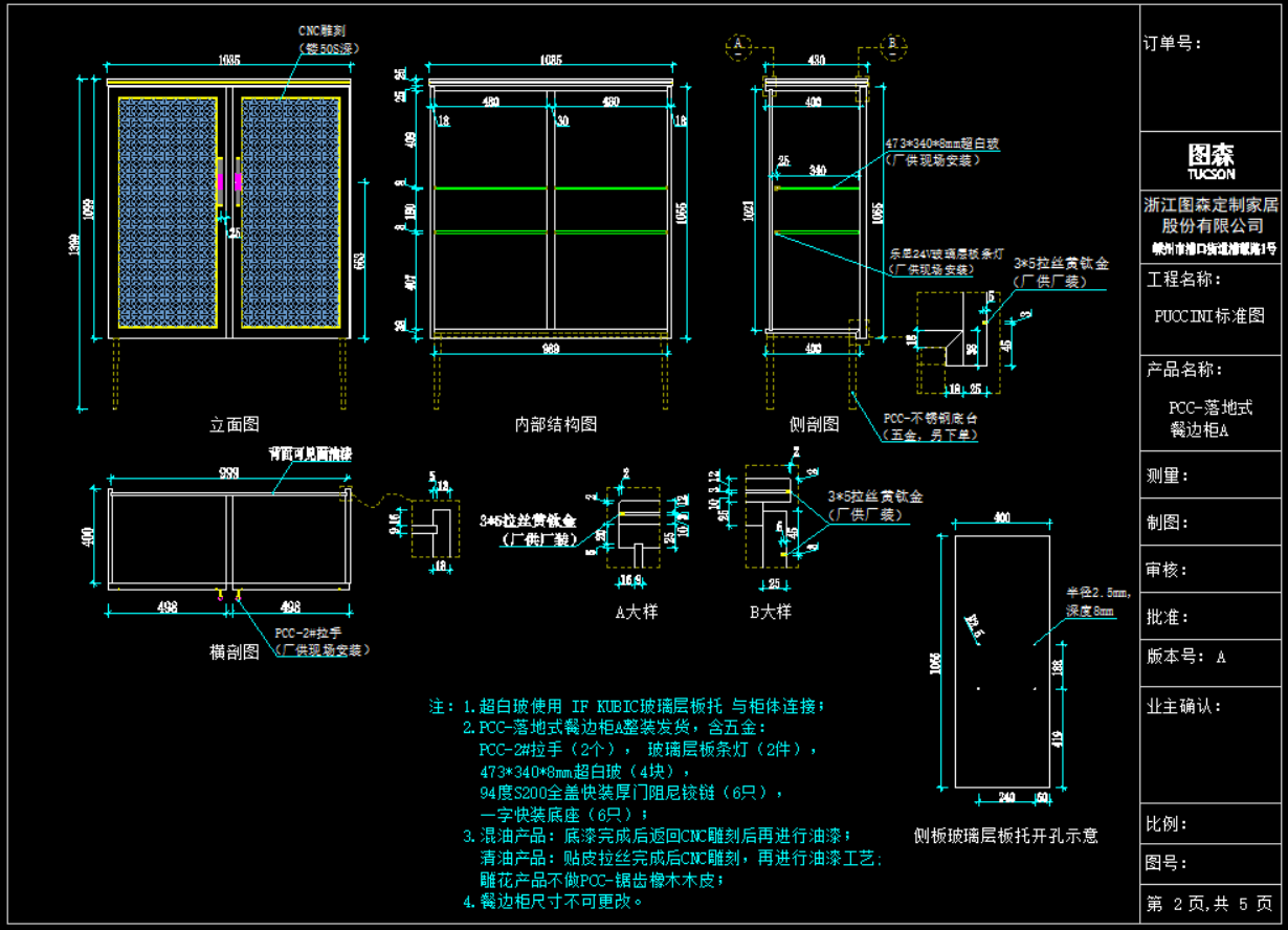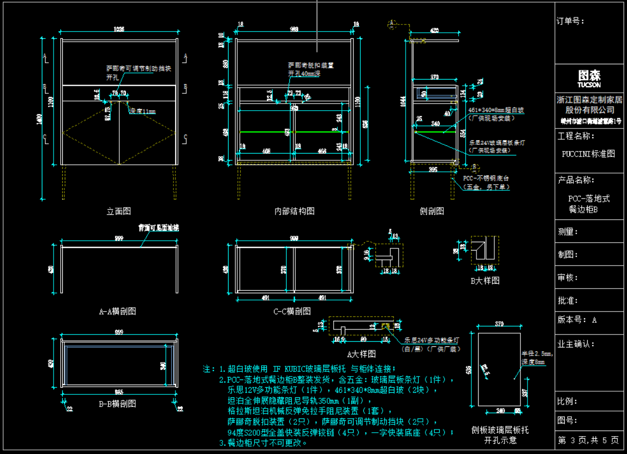 截图显示《图森-PUCCINI系列餐边柜标准图》部分资料