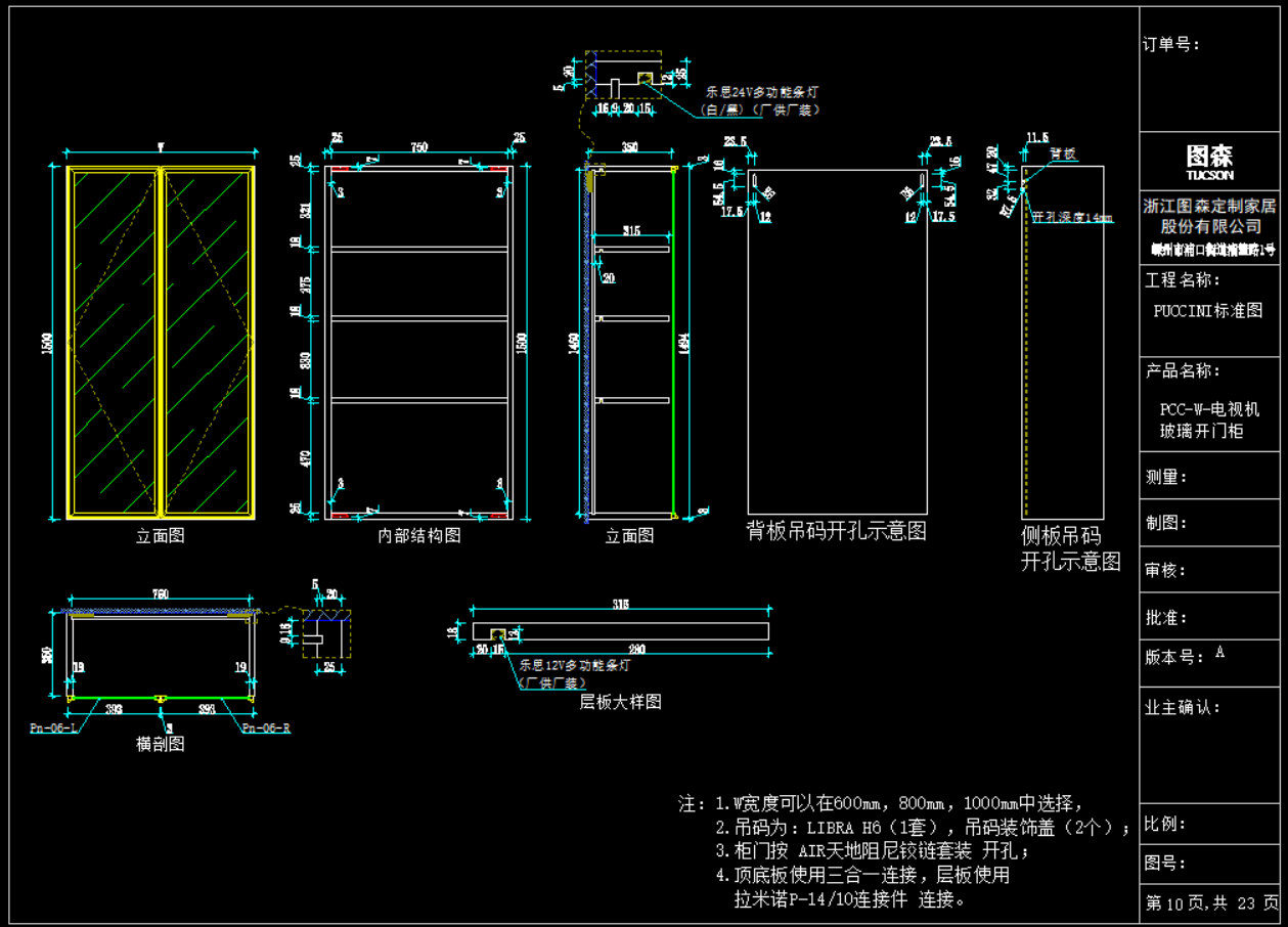 《图森-PUCCINI系列型材玻璃柜标准图》
