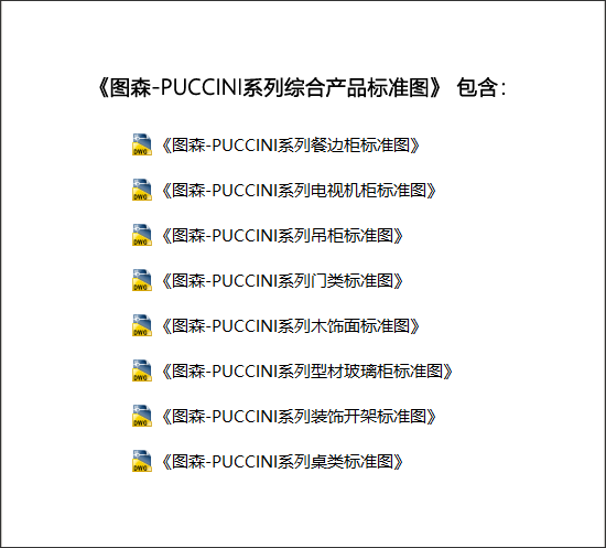 图森-PUCCINI系列:《图森-PUCCINI系列综合产品标准图》,文件格式:Dwg,AutoCAD2007软件以上版本可打开