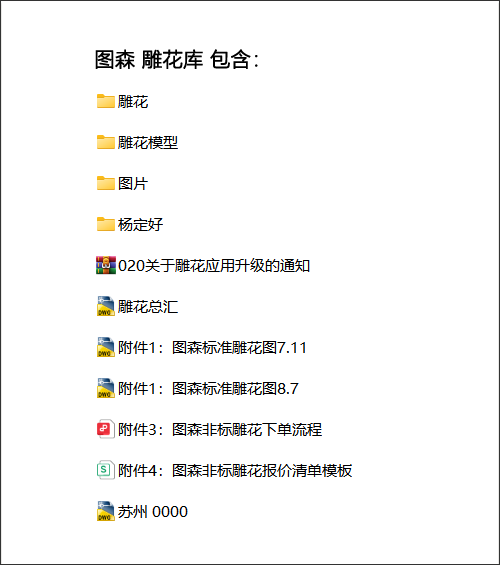 图森 雕花库只截图显示了:《附件1:图森标准雕花图》部分资料